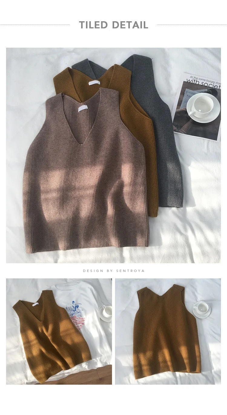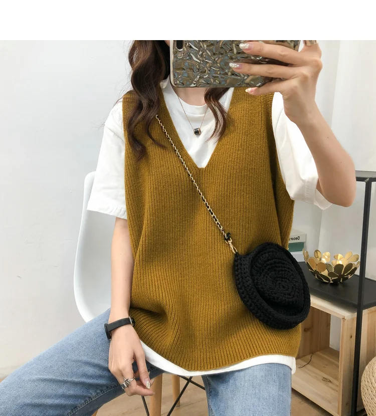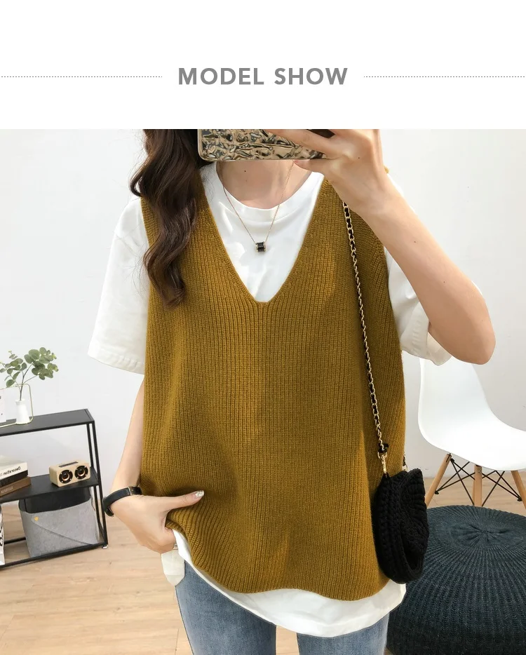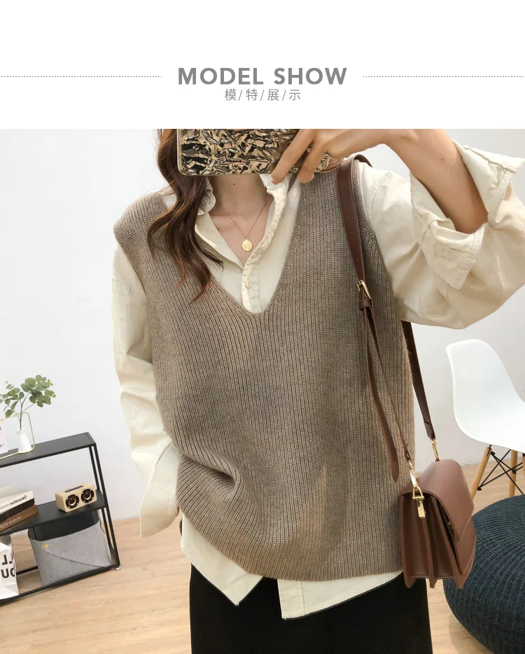 Осенний женский свитер, жилет, элегантный женский пуловер с V-образным вырезом в Корейском стиле для студентов, вязаные топы, верхняя одежда, жилет серого цвета, 1 шт., 2020
