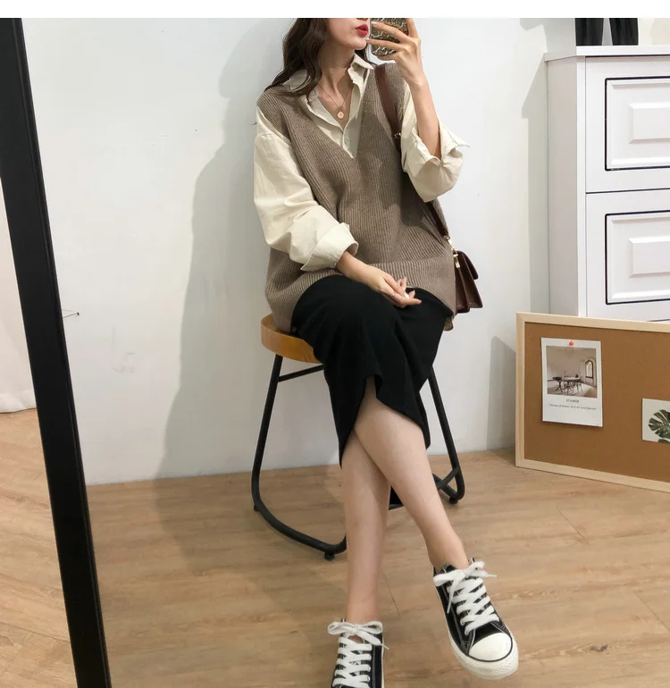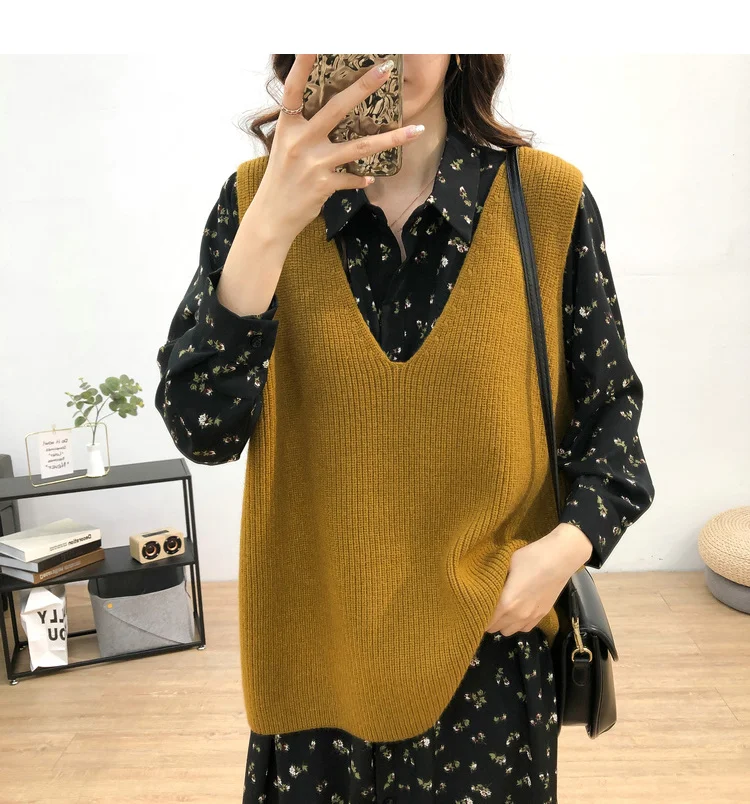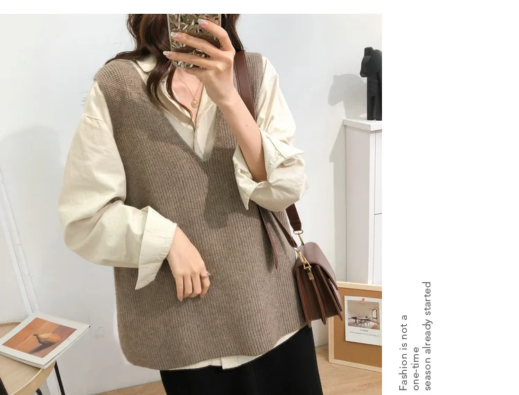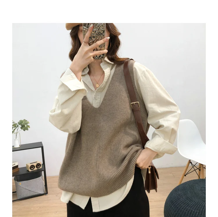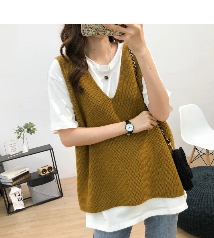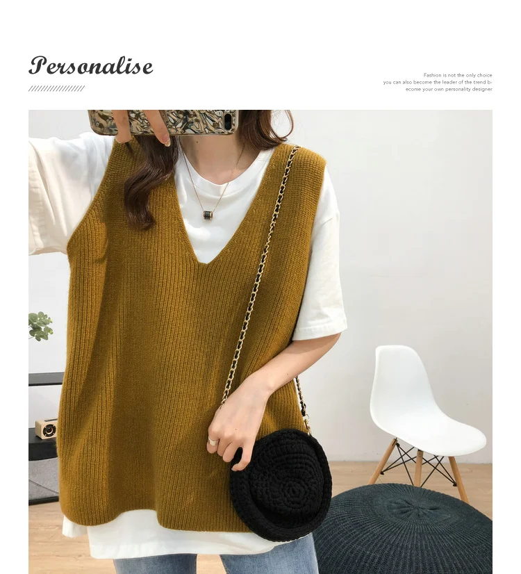 Осенний женский свитер, жилет, элегантный женский пуловер с V-образным вырезом в Корейском стиле для студентов, вязаные топы, верхняя одежда, жилет серого цвета, 1 шт., 2020