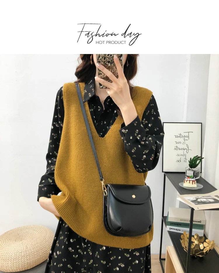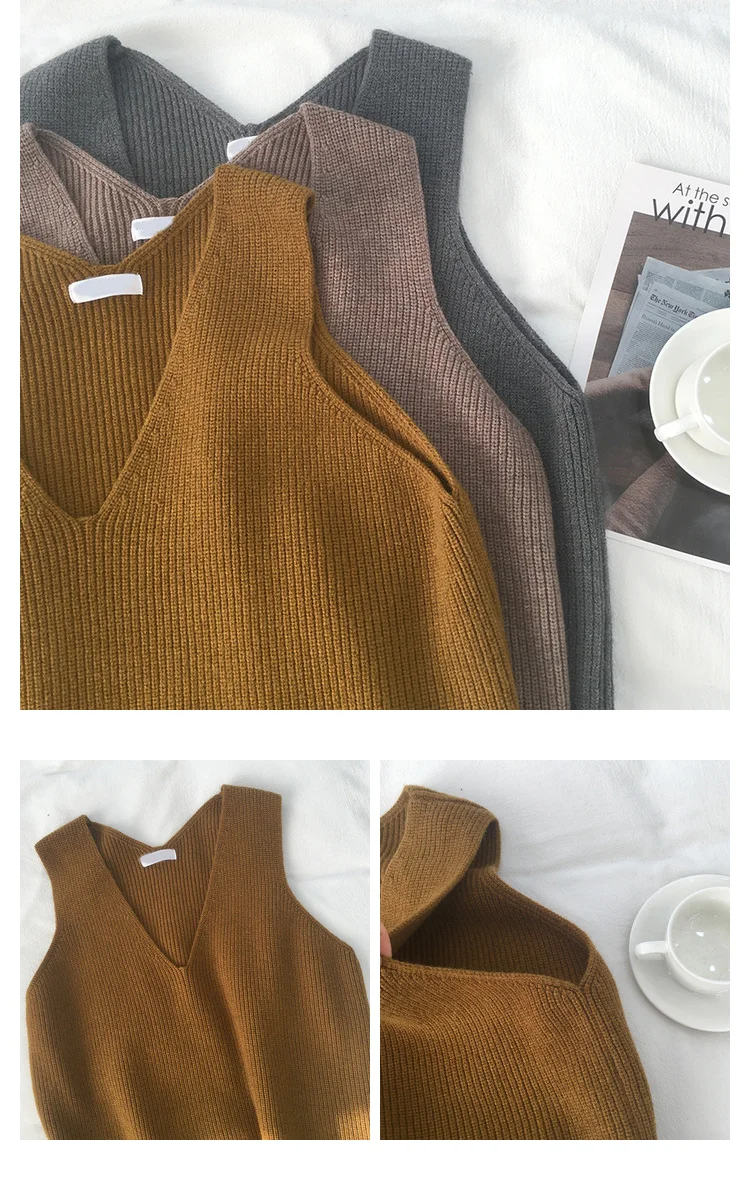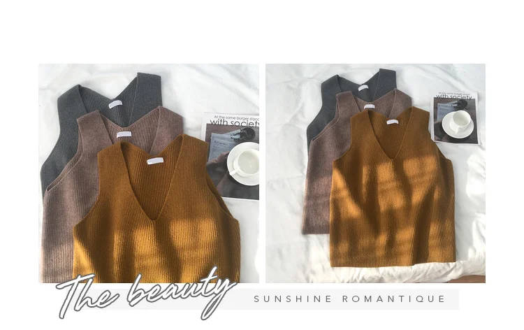 Винтажный женский жилет, однотонный базовый жилет, женская одежда, ...