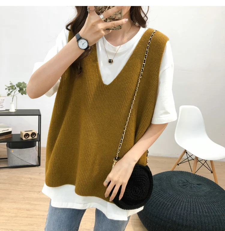 Женский свитер, жилет с V-образным вырезом, вязаная однотонная мешк...