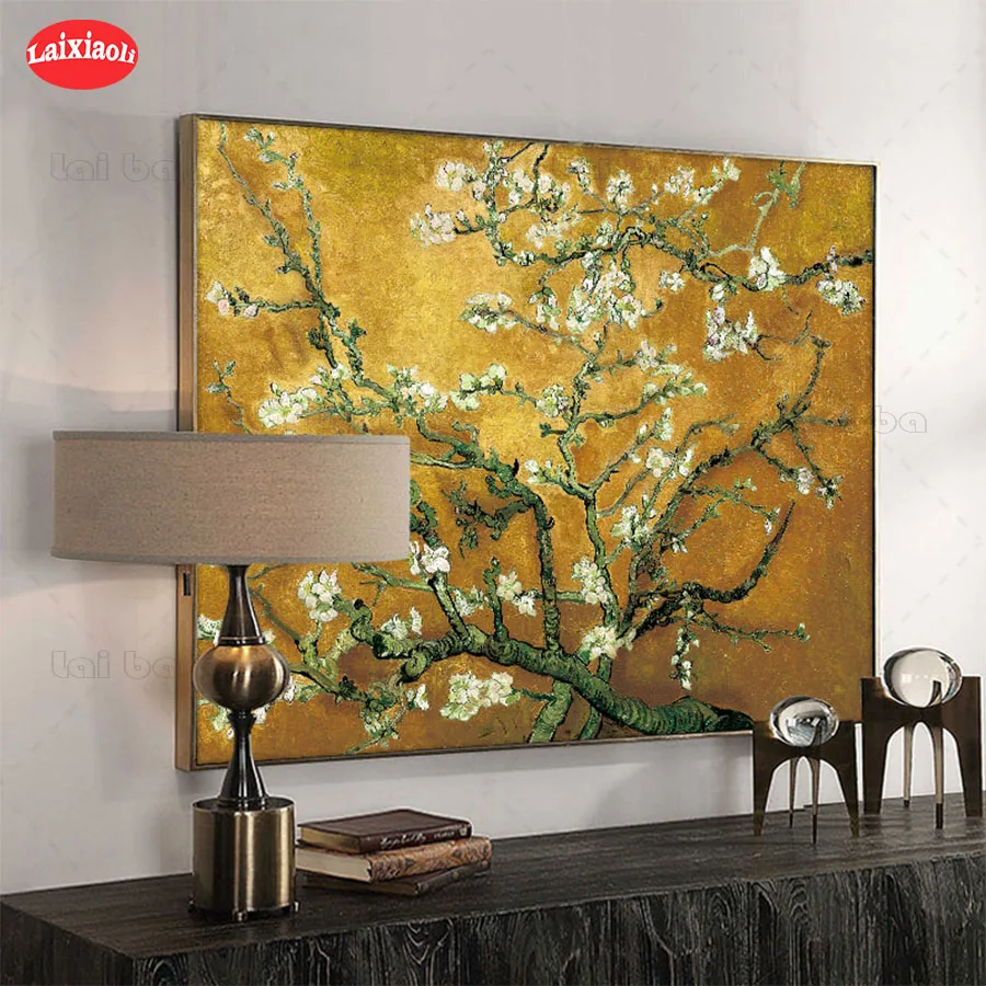 Алмазная живопись Цветущий миндаль Бриллиантовая вышивка с изображением дерева полная квадратнаякруглая дрель Пазлы подарки на новый год
