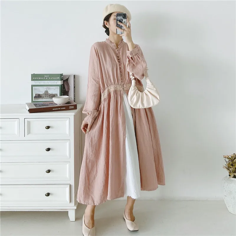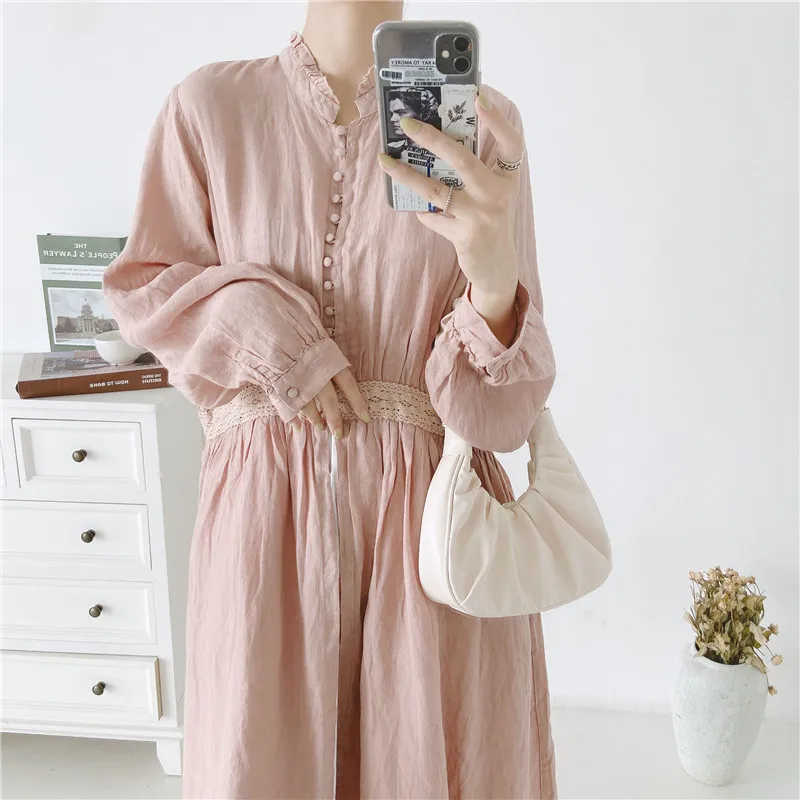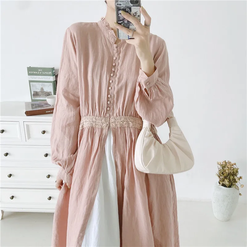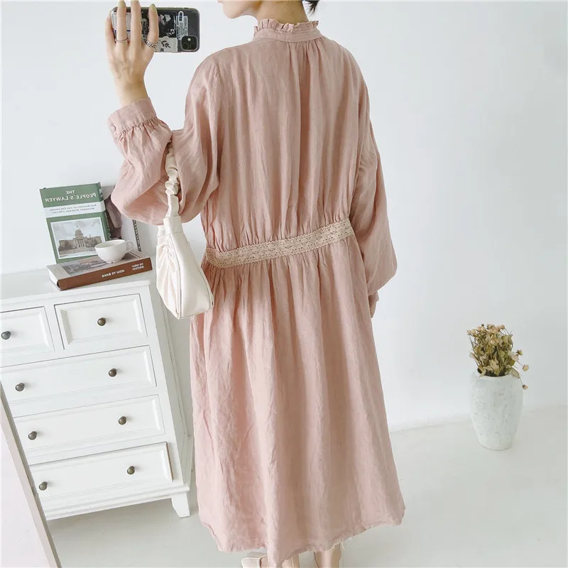 Женская льняная блузка с вышивкой Johnature, длинная, винтажная, с оборками, на пуговицах, свободная, для осени, 2021
