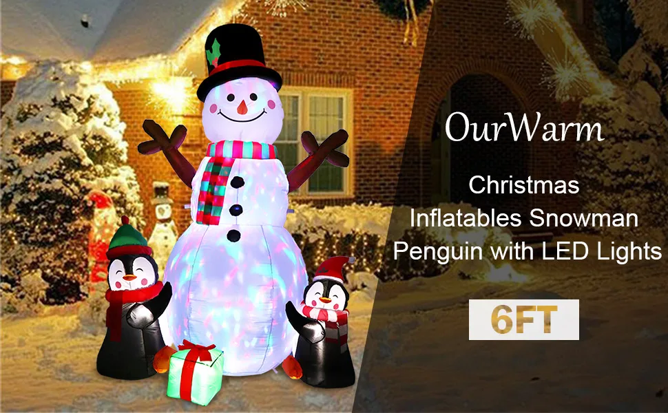 Новогодние украшения OurWarm 183 см, Модернизированный надувной реквизит в виде снеговика, надувная игрушка для помещений, улицы, двора, сада, украшения
