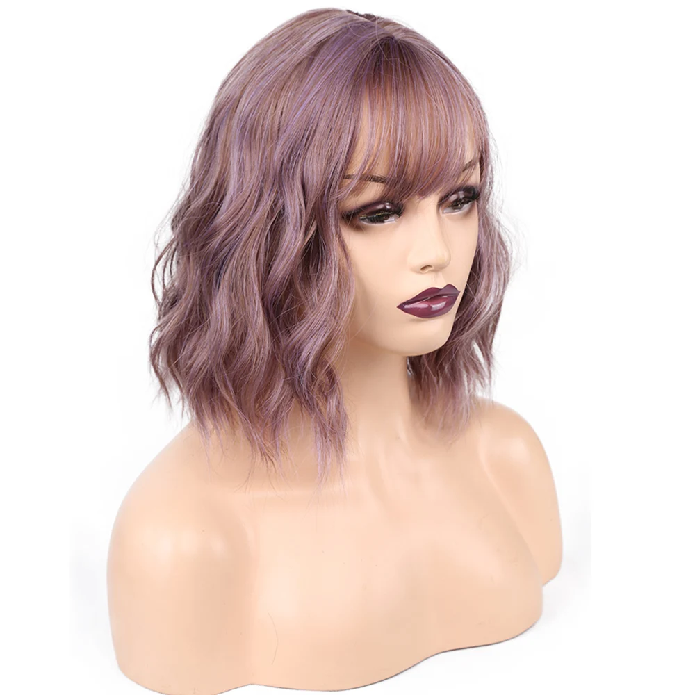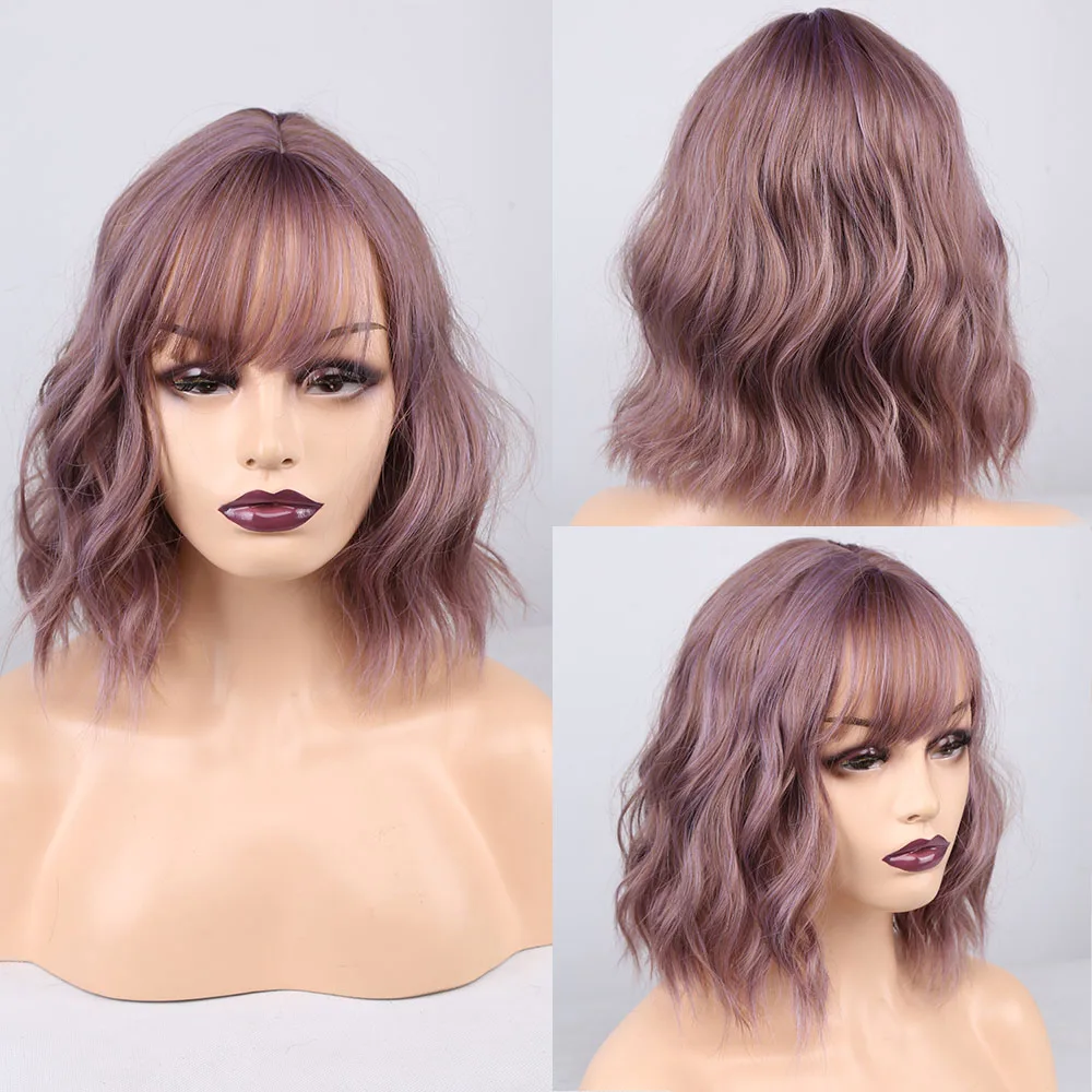 Amir фиолетовый синтетический парик Лолита короткий боб парик с челкой косплей водные волны синтетические волосы черный парик для женщин в американском стиле