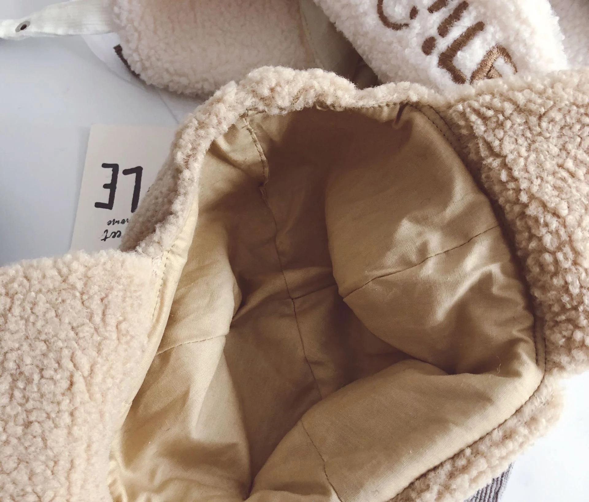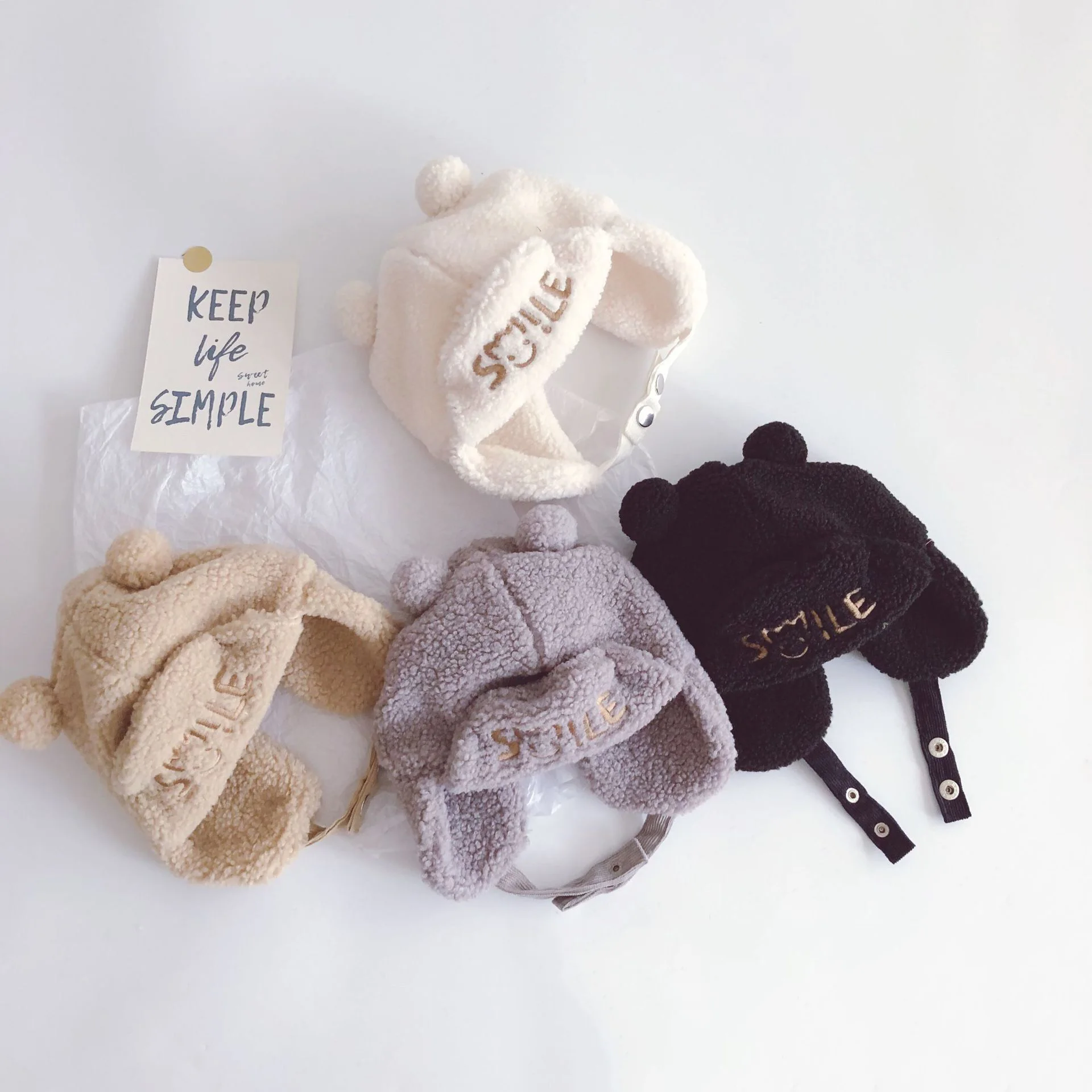 Детская шапка для мальчиков и девочек, детская шапка-муфта с ушами, зимняя теплая плюшевая хлопковая шапка, уличная Шапка-бини для Лэй Фэна, Дамская шапка