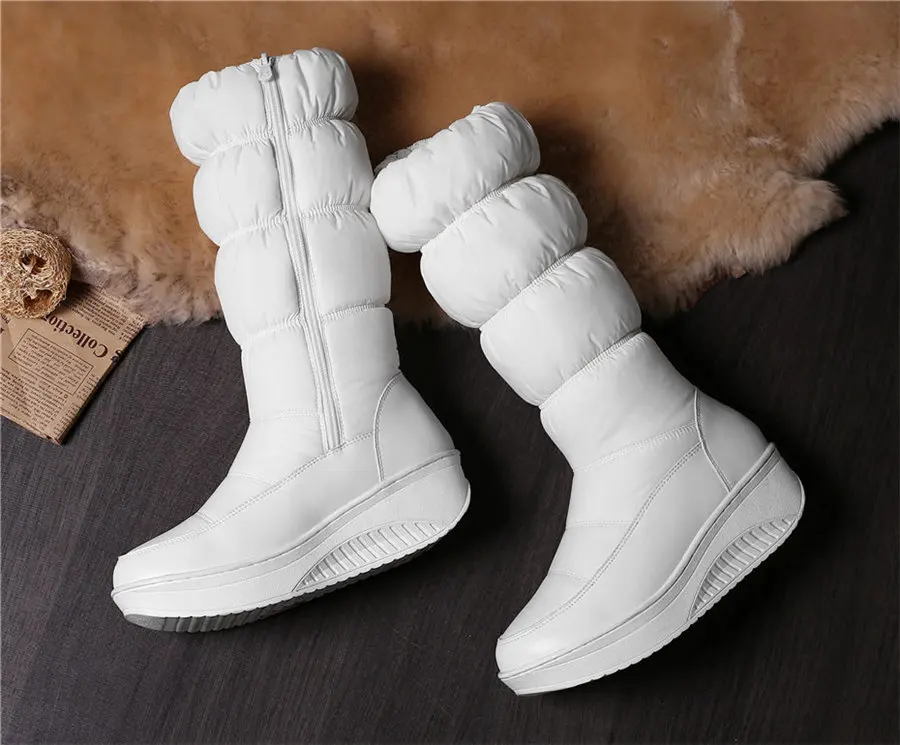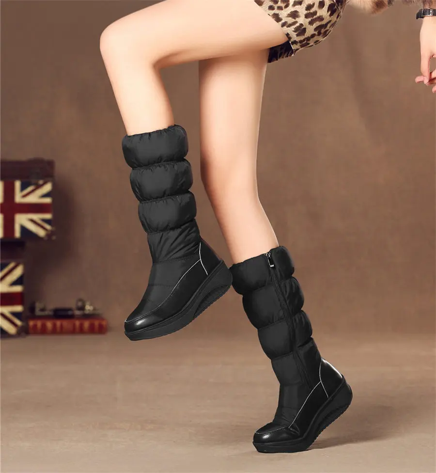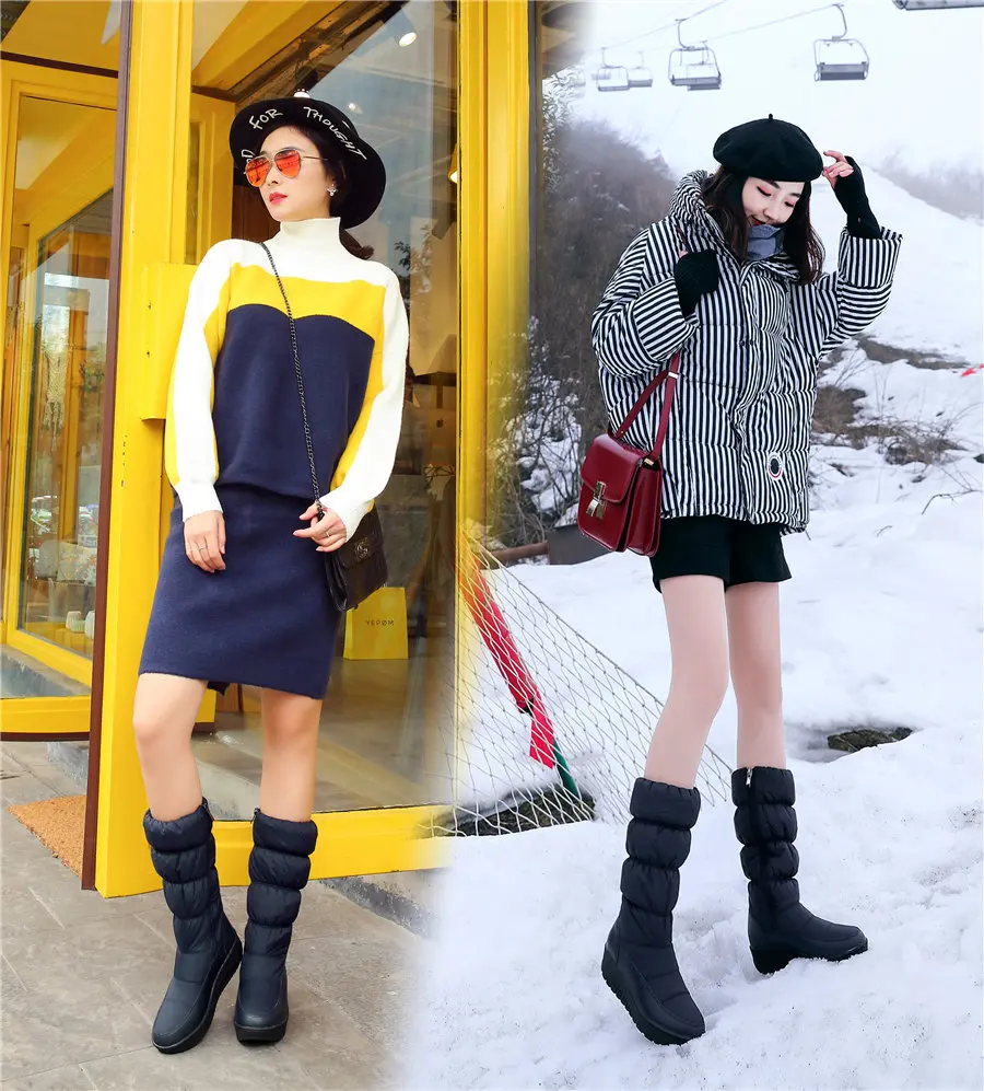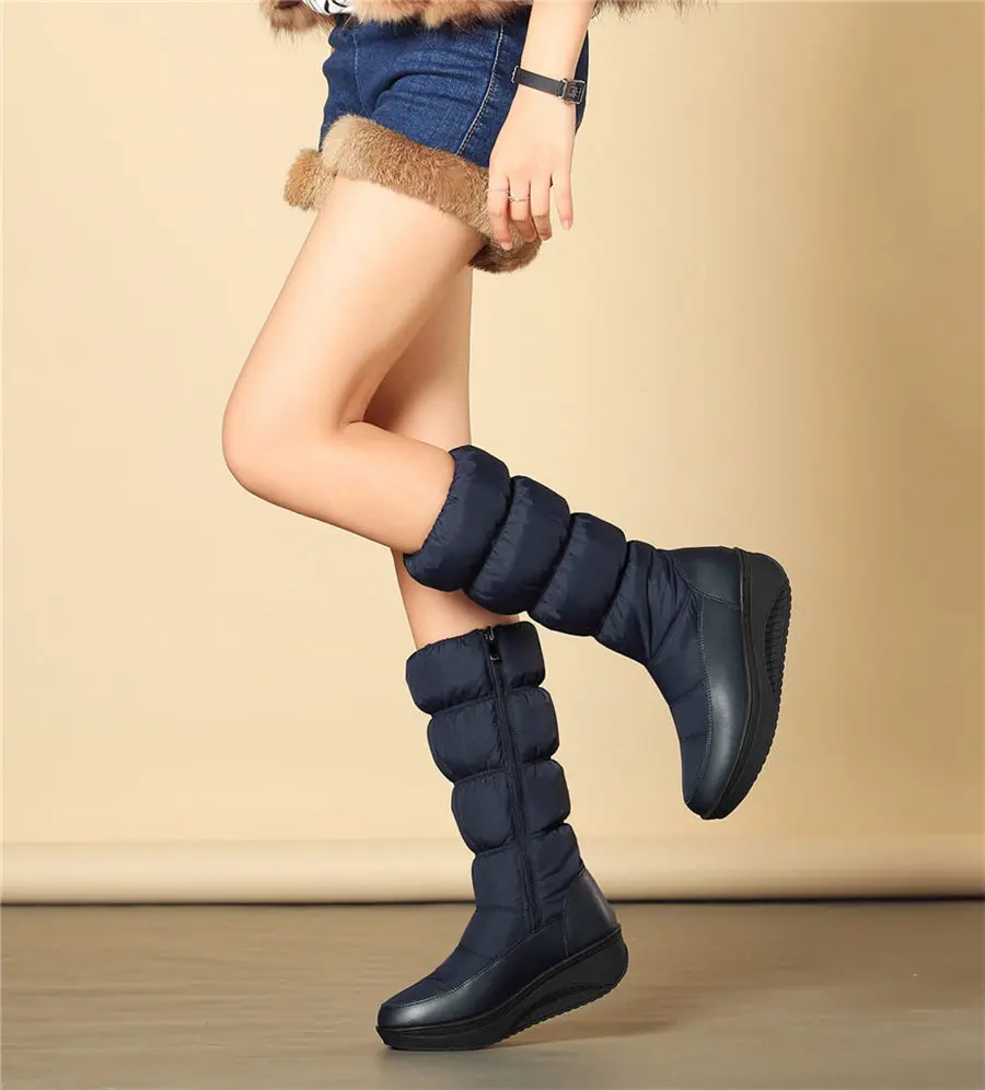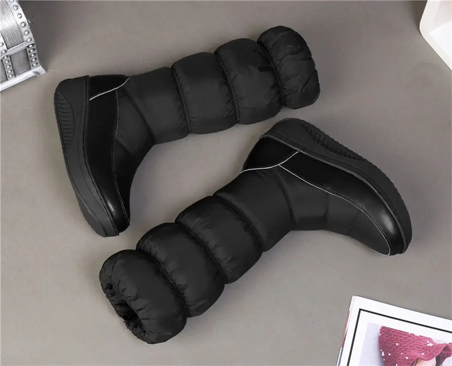 Женские зимние сапоги; Плюшевые сапоги до колена на танкеткеБотинки