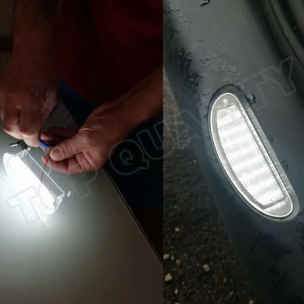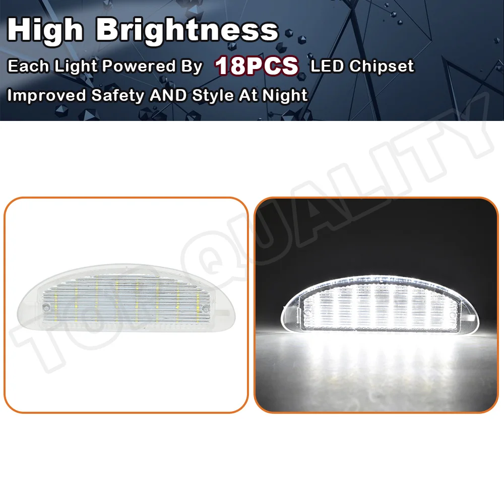 1. 1 шт. = 1 комплект светодиодный светильник номерного знака2. Полный светодиодный фонарь с прозрачными линзами.3. Каждый светодиодный номерной знак светильник питается от наивысшей мощности белого цвета светодиодный диоды для подавления переходных скачков напряжения.4. Превосходное приспособление для OEM или других aftermarket номерных знаков.5. Нет ошибок на приборной панели6. В 5 раз ярче, чем галогенные лампы.7. Значительно повышает безопасность и видимость во время езды ночью.