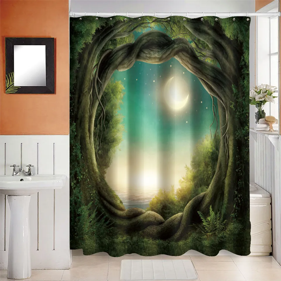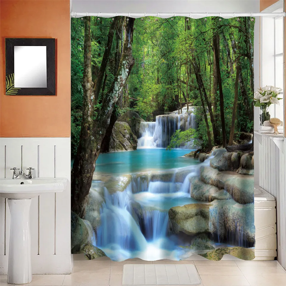Занавеска для душа из полиэстера, водонепроницаемая, с изображением природы, Листьев, леса, водопада, для ванной, 180