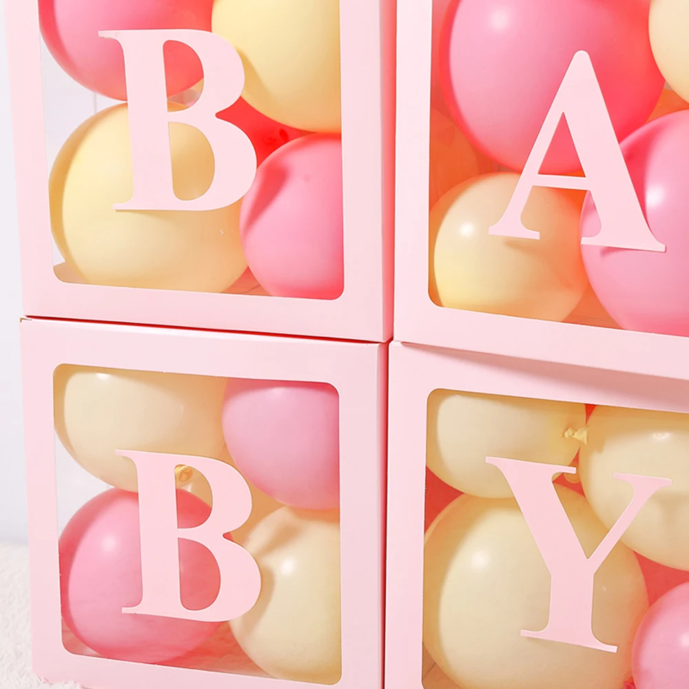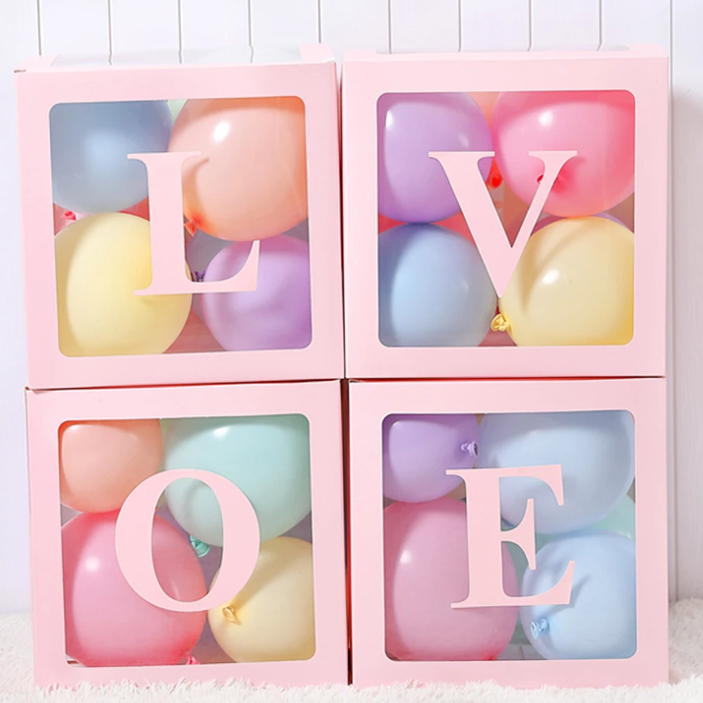 Прозрачная коробка для воздушных шаров с буквенным именем, Возрастная коробка, украшения для детского душа, декор для дня рождения, Baby Shower, свадебное украшение «сделай сам», розового цвета