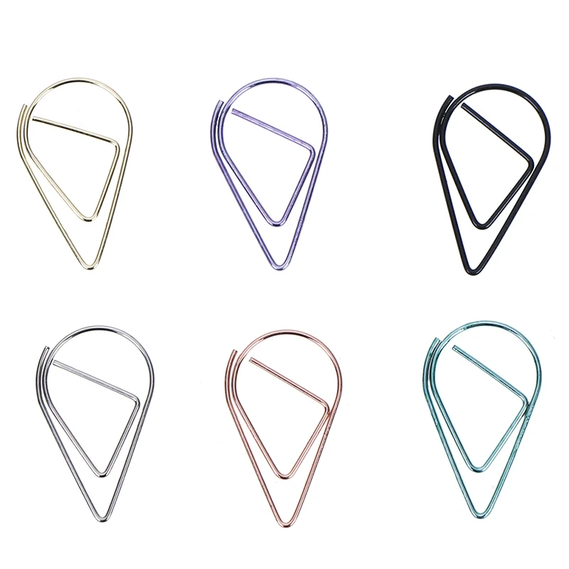12 шт., моделирующие бумажные зажимы, металлический материал, форма капли воды, золотой, серебряный, черный цвет, закладки, зажимы для заметок, Эсколар, Papelaria