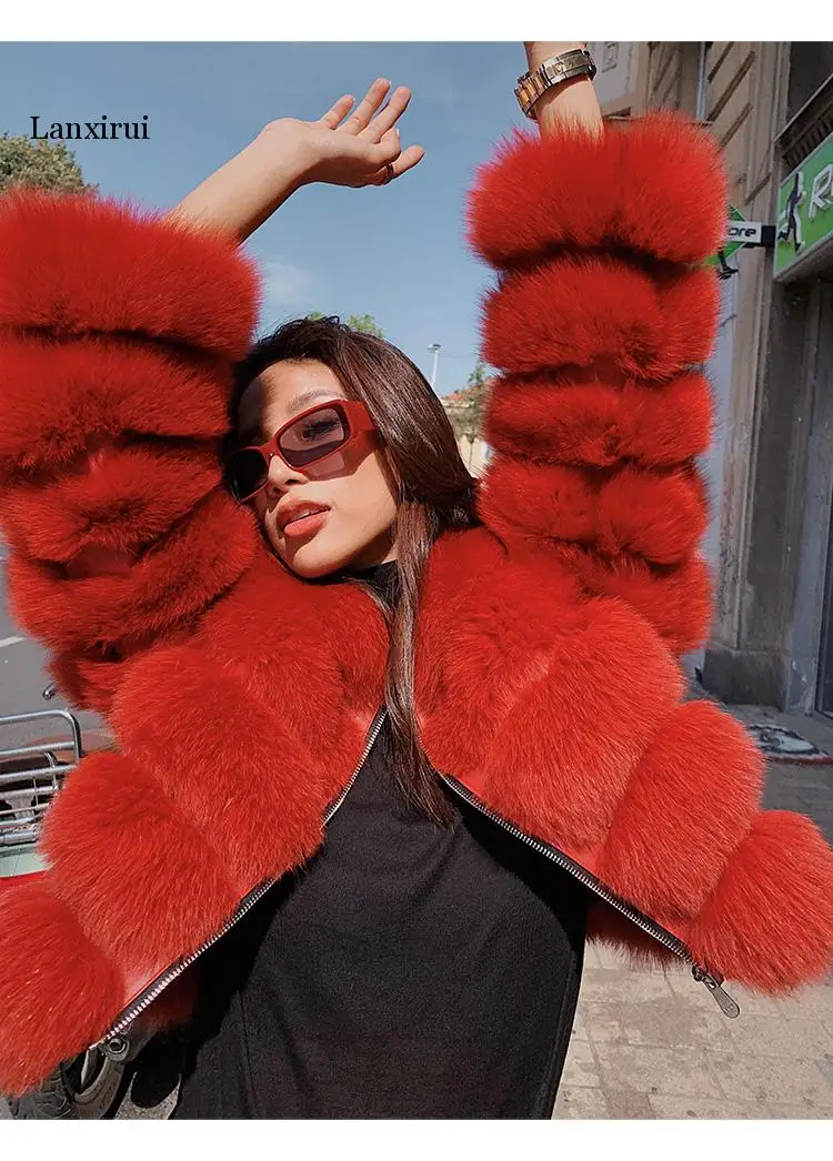 Новинка, Модный женский укороченный топ, пальто из искусственного лисьего меха, Зимняя Толстая пушистая Короткая Стильная приталенная Меховая куртка с длинным рукавом