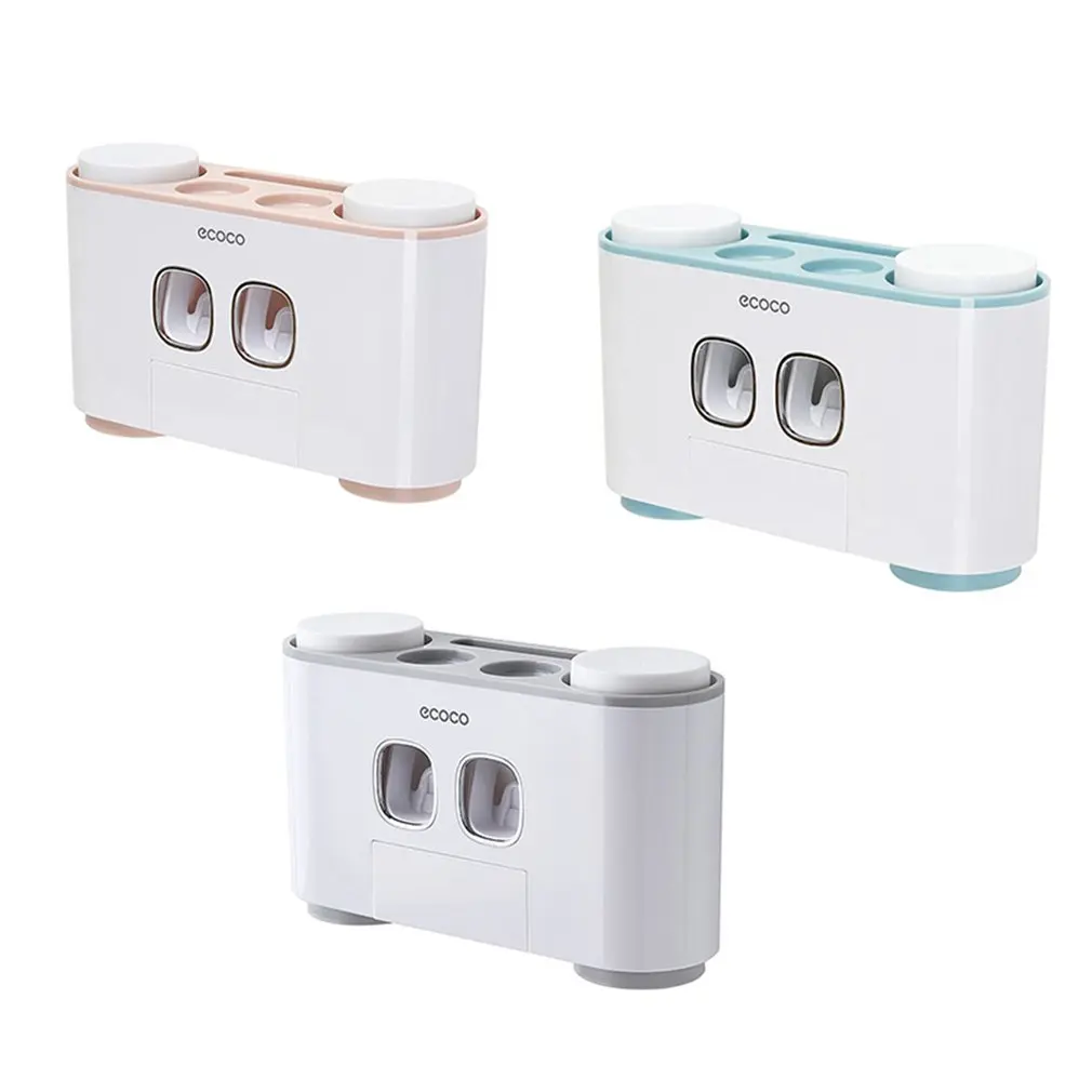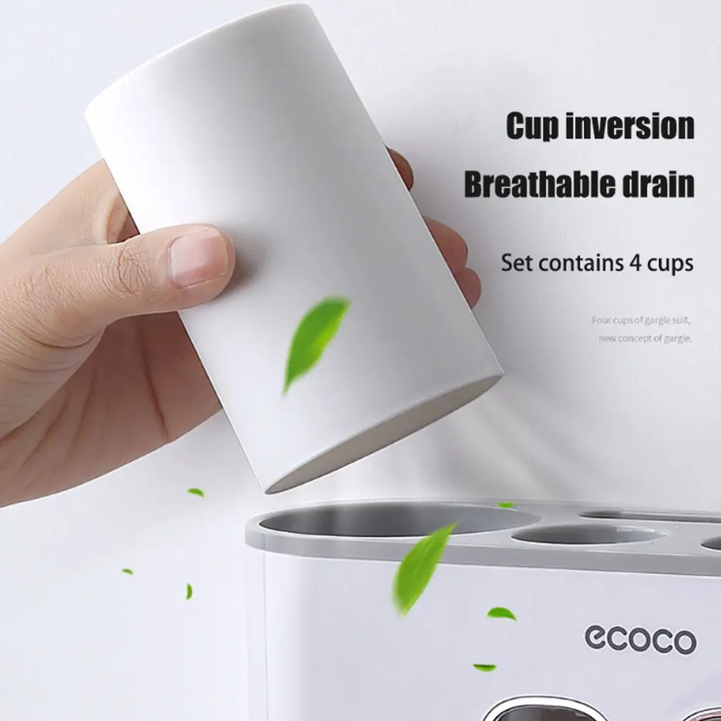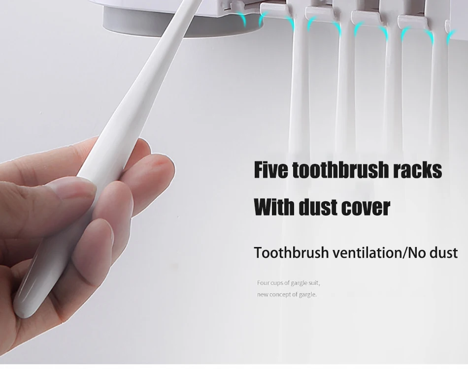 Настенный держатель для зубных щеток с 5 пыленепроницаемыми прорезями для зубных щеток, 4 чашки, 2 Диспенсера для зубной пасты без рук. Простой в использовании, быстрый, безопасный и гигиенический
