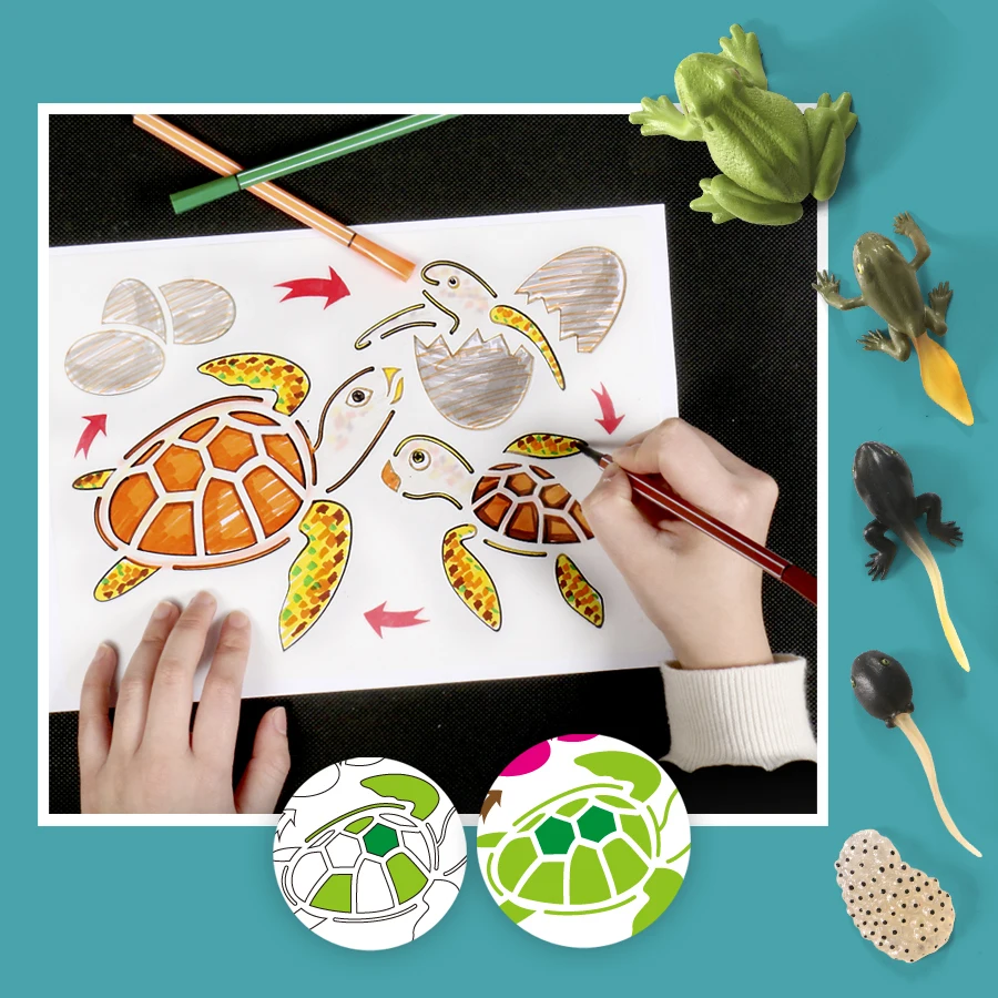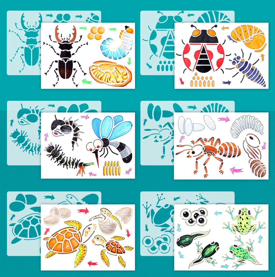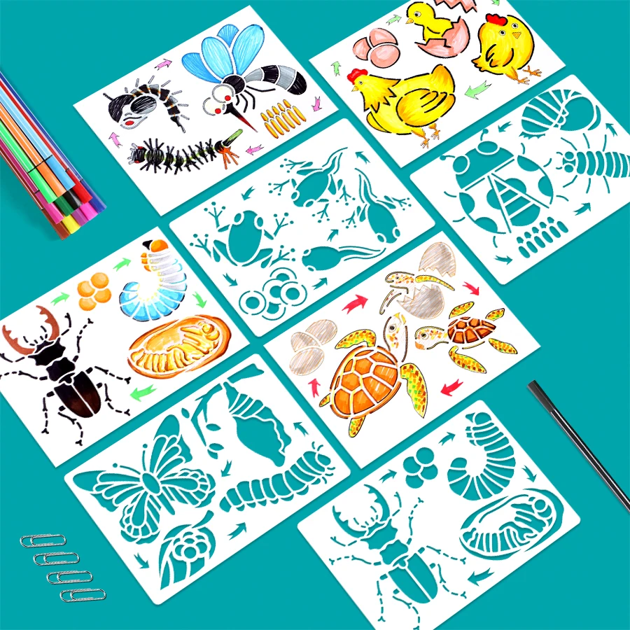 Божья коровка Монтессори, Бабочка, курица, лягушка, трафареты для рисования жизненного цикла, фигурка животных Обучающие, развивающие игрушки для детей