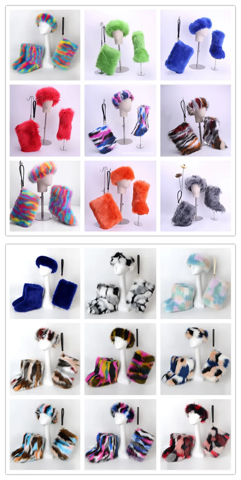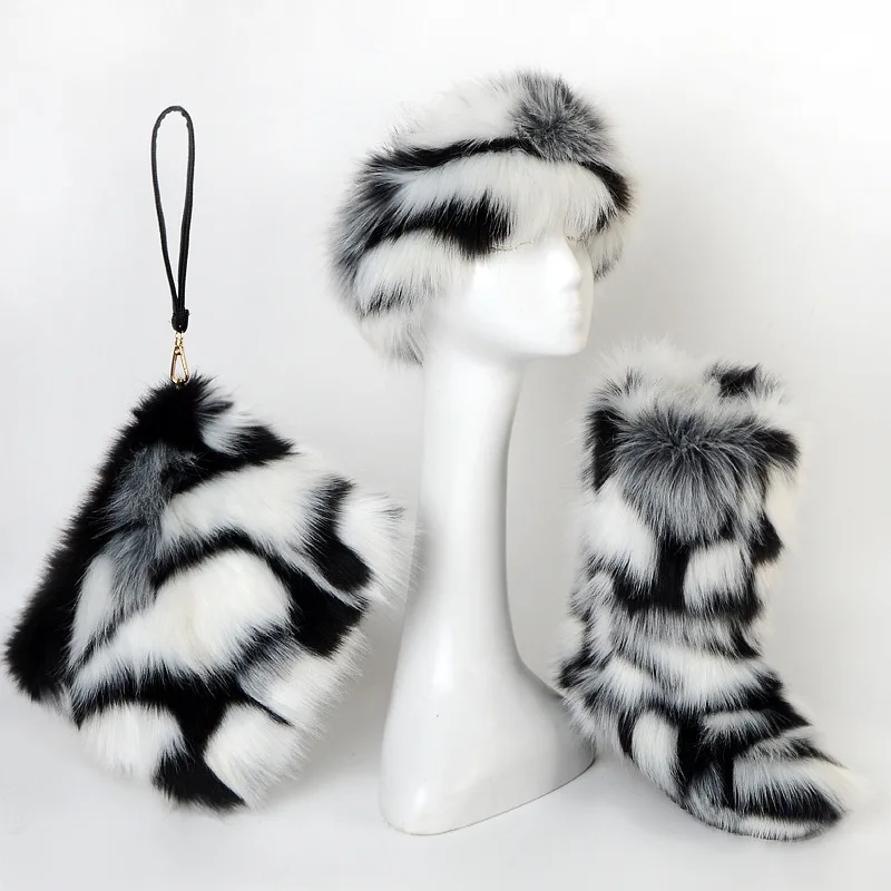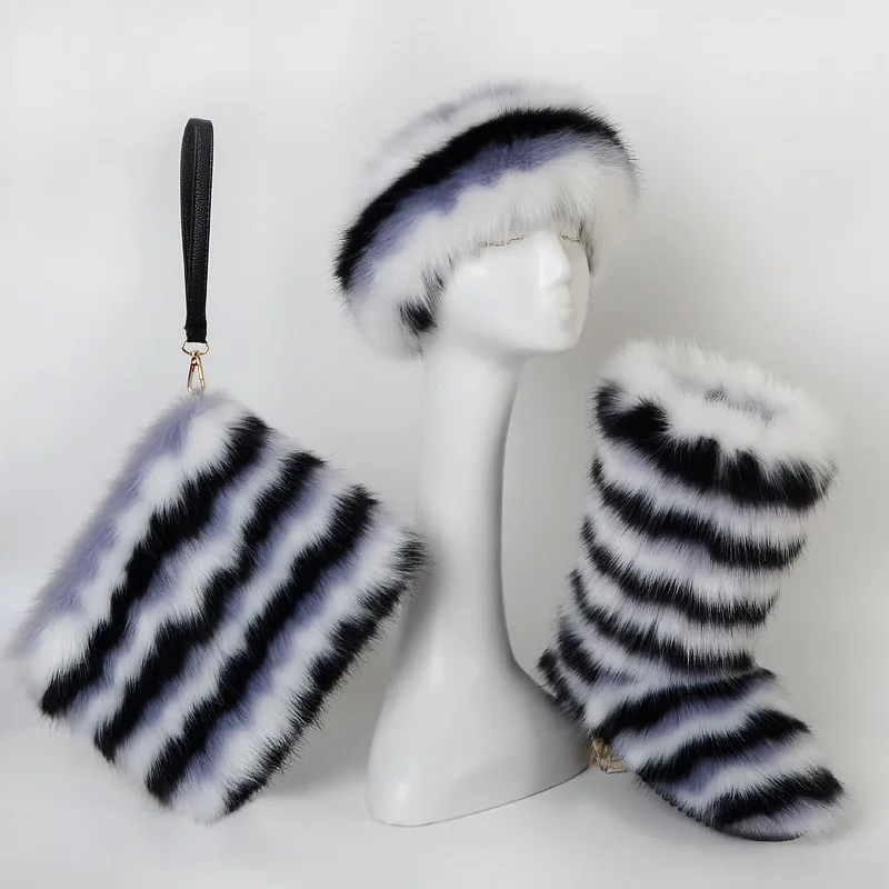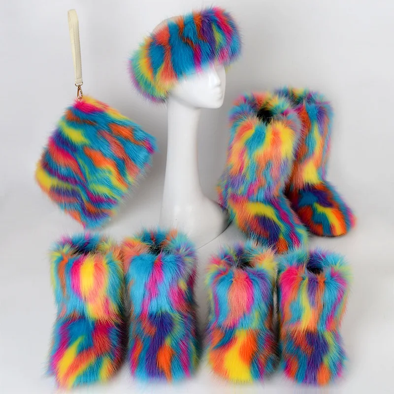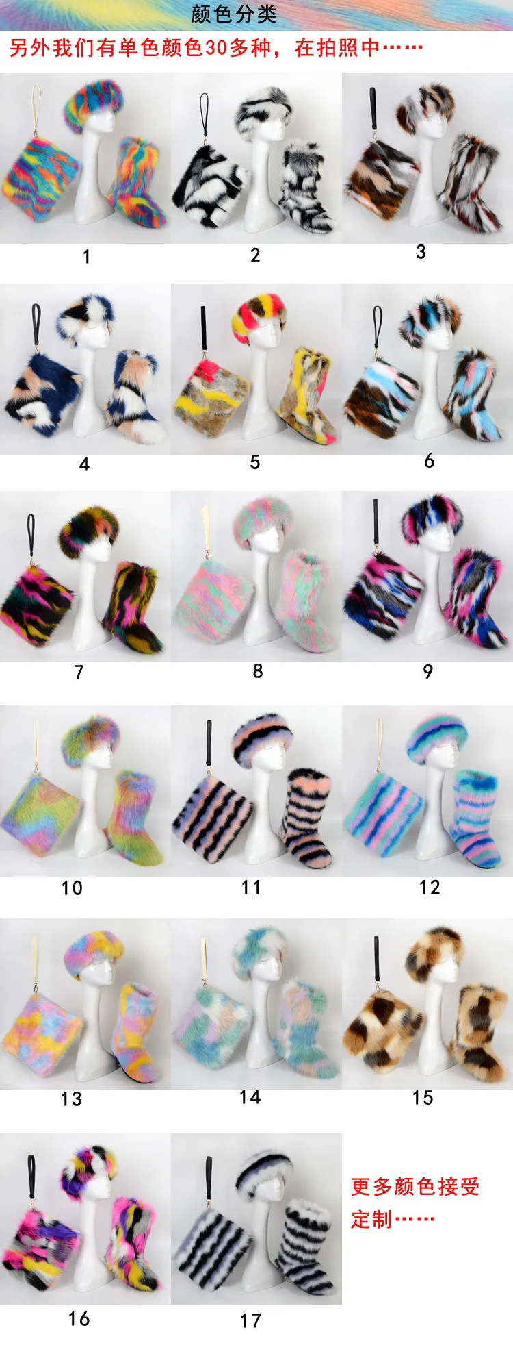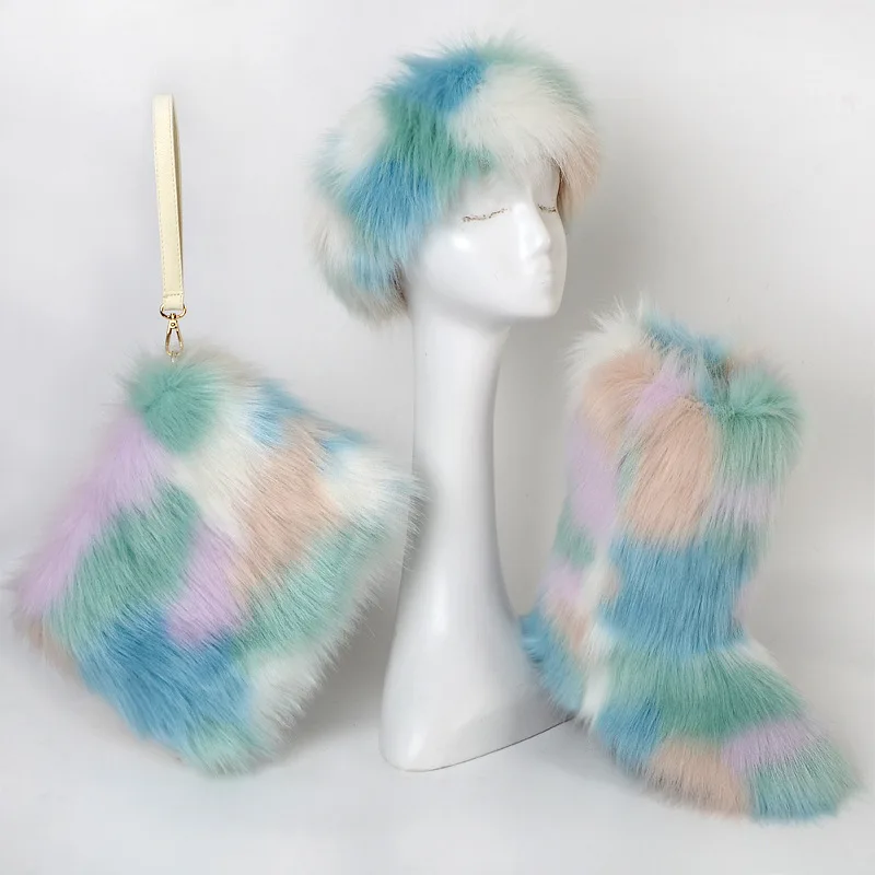 Swoncoмеховые сапоги с шапкой + сумкой; Зимние сапоги на меху; Женская зимняя обувь; 2020; Разноцветные меховые сапоги; Женская меховая сумка