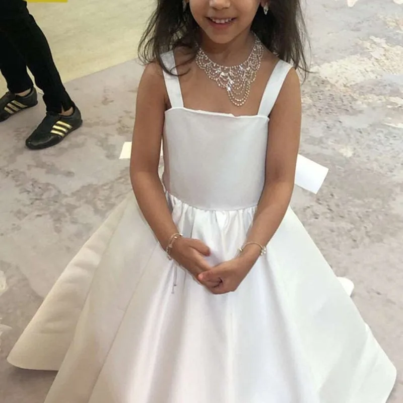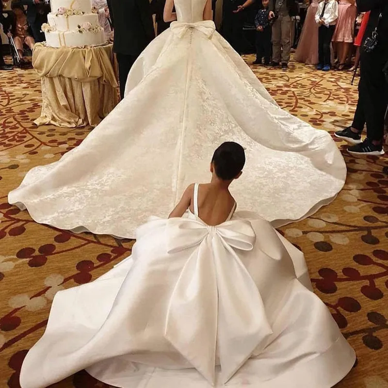 Платье цвета слоновой кости с цветочным рисунком для свадьбы, праздничное платье для девочек платье подружки невесты с большим бантом для маленьких девочек