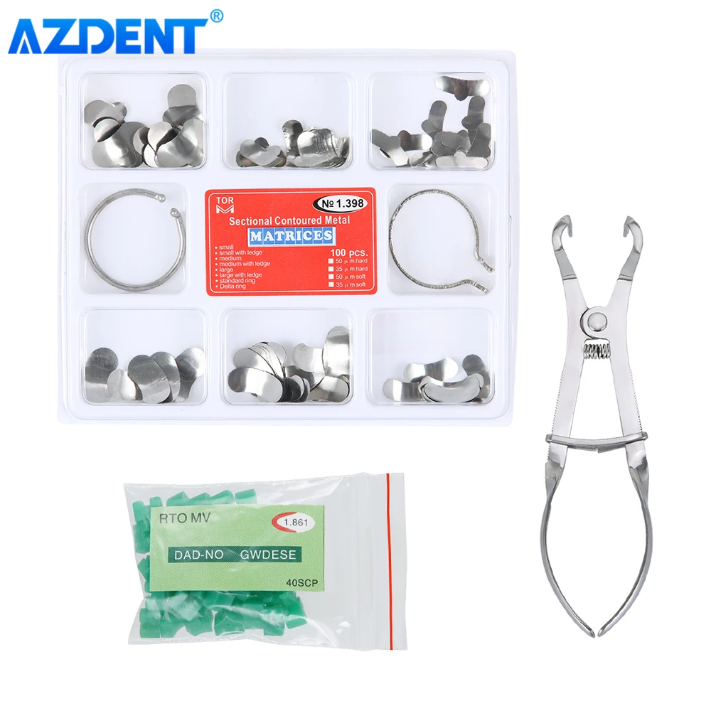 AZDENT 100 шт. стоматологические секционные Контурные матрицы 1,398 матричная лента формовочный зажим 40 шт. силиконовые Клещи Стоматологические плоскогубцы