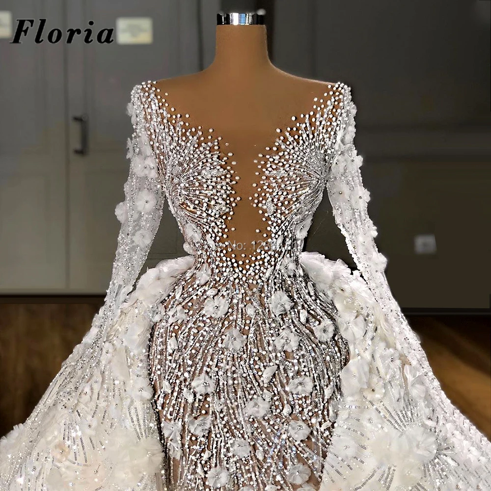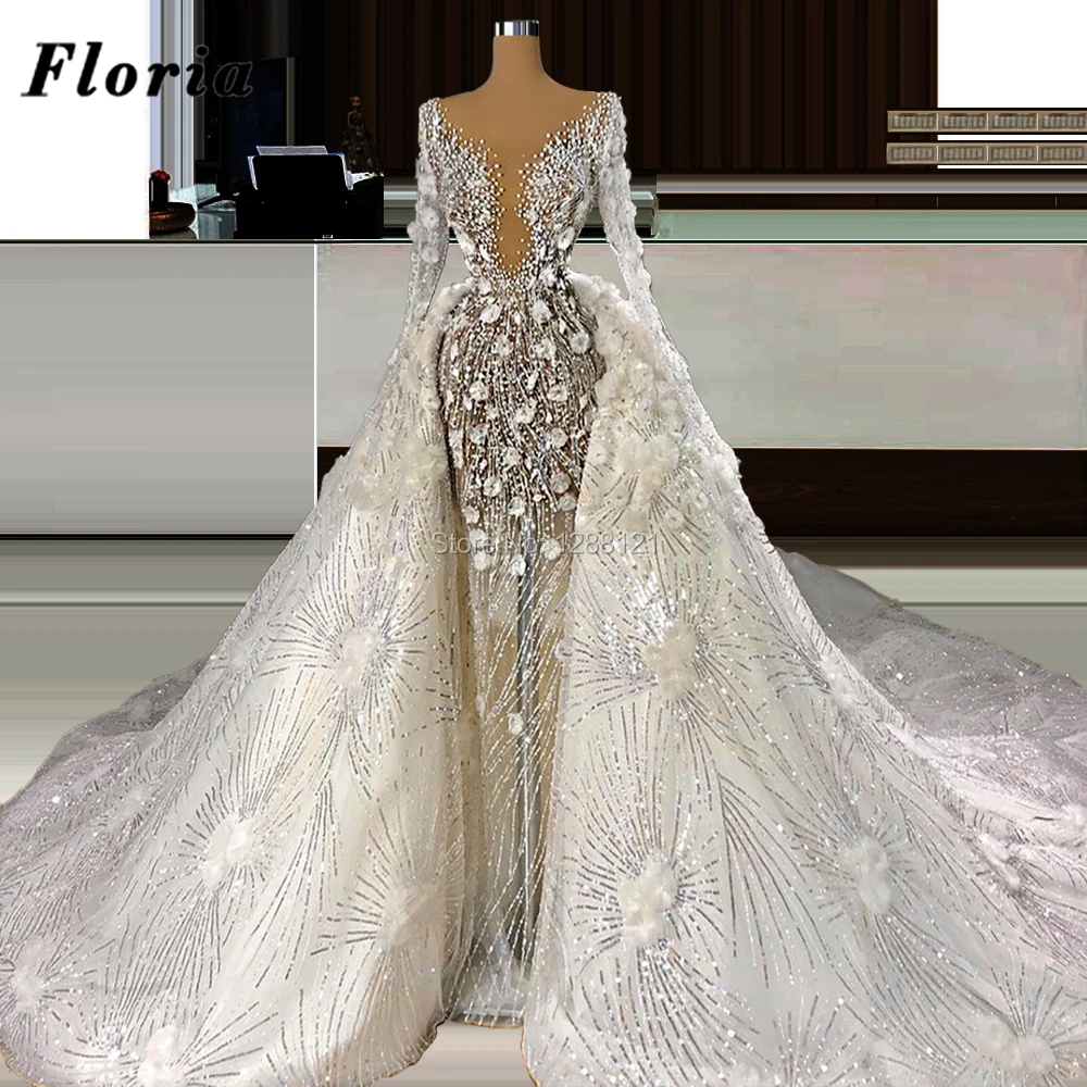 Kaftans Съемная юбка свадебное платье 2021 Дубай с длинным рукавом бисером Свадебные платья блестящие невесты платья Vestidos De Novia