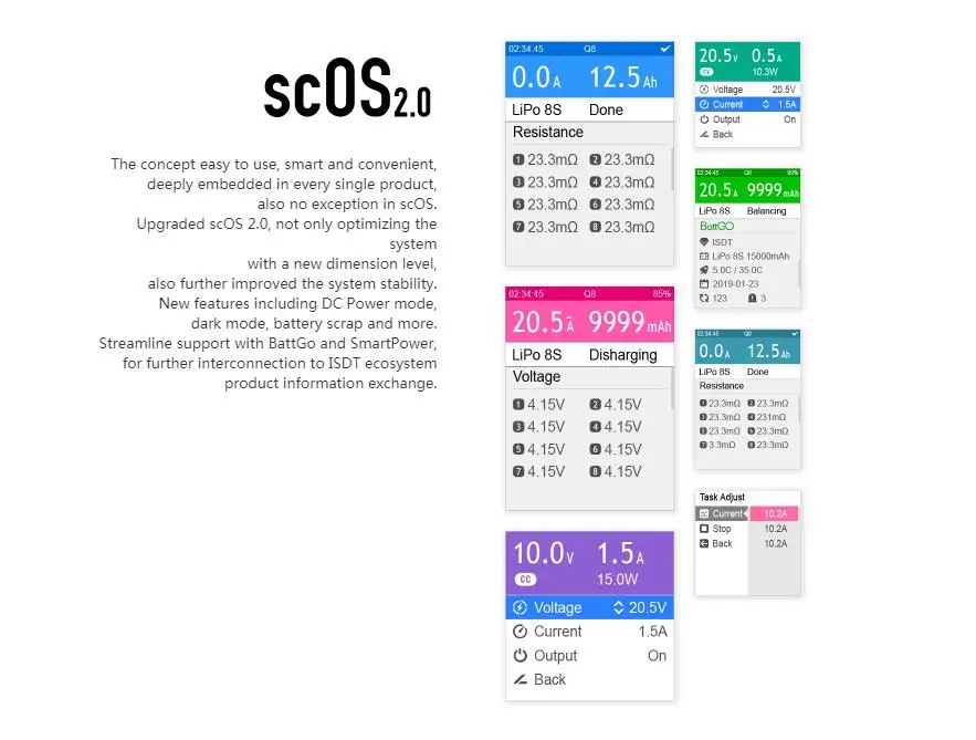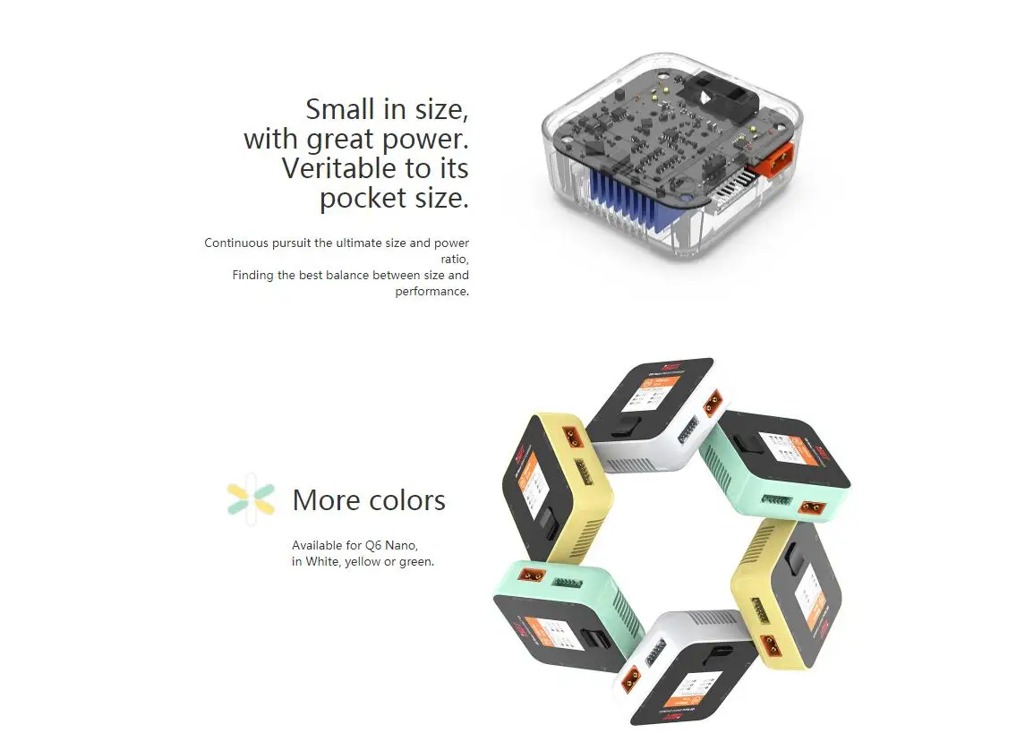 Балансирующее зарядное устройство ISDT Q6 Nano 200 Вт, 8 А, 1-6SQ8, 500 Вт, 20 А, 2-8SQ8, макс. 1000 Вт для литий-полимерных аккумуляторов, для моделей Lilon Lipo, LiHV, NiMH, Pb, RC
