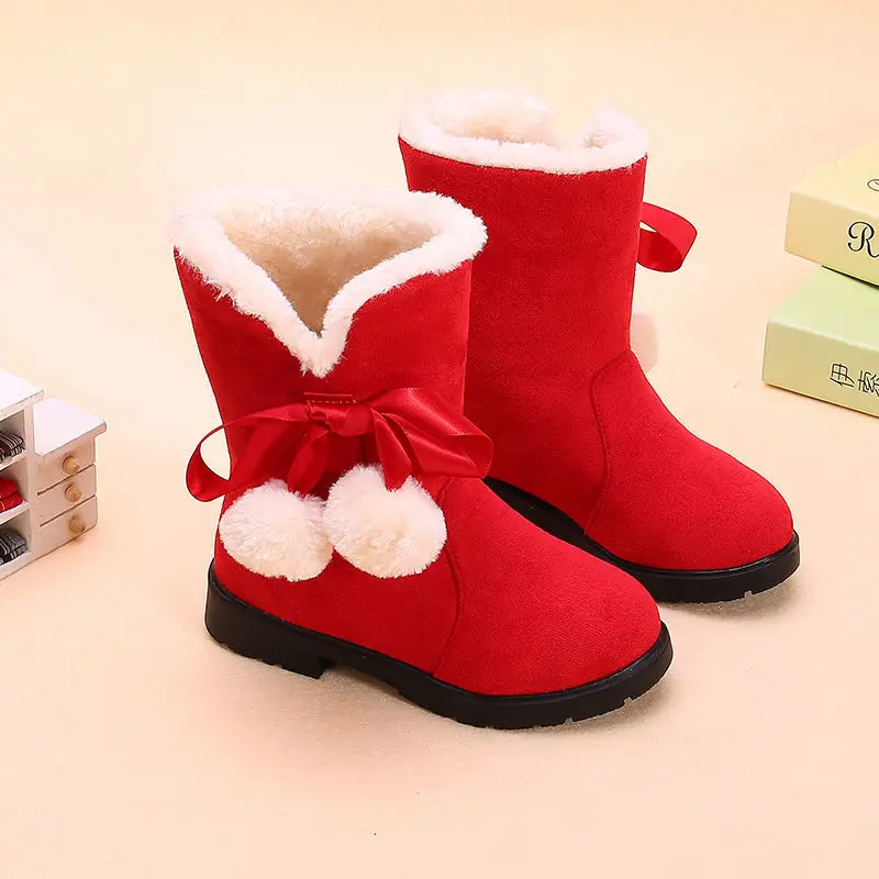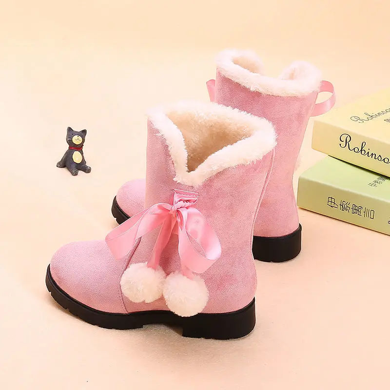 Зимние Детские Длинные теплые сапоги для девочек, детская замшевая кожаная плюшевая хлопковая обувь принцессы, снежные сапоги, От 5 до 11 лет