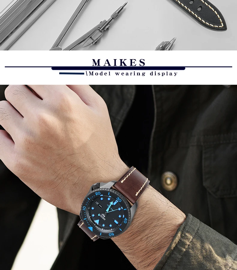 Ремешок для наручных часов MAIKES, Кожаный Прочный мягкий браслет д...