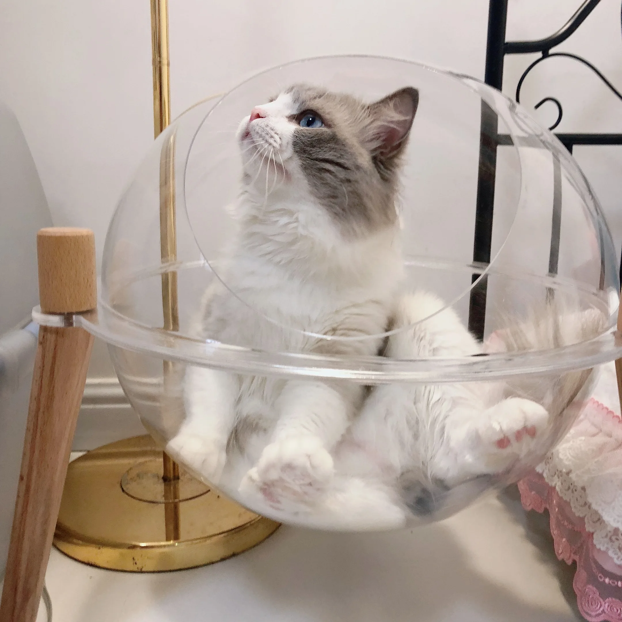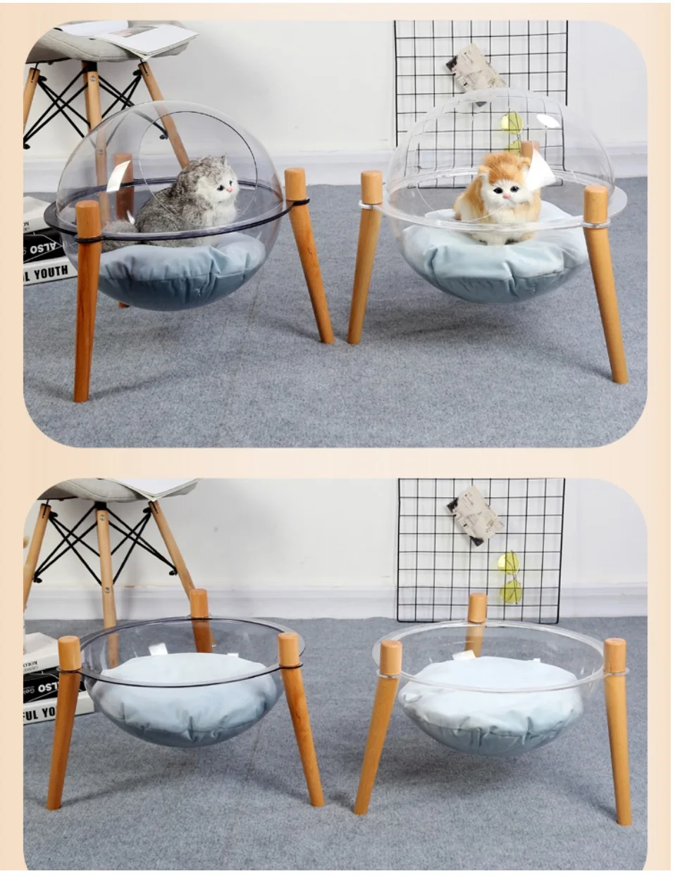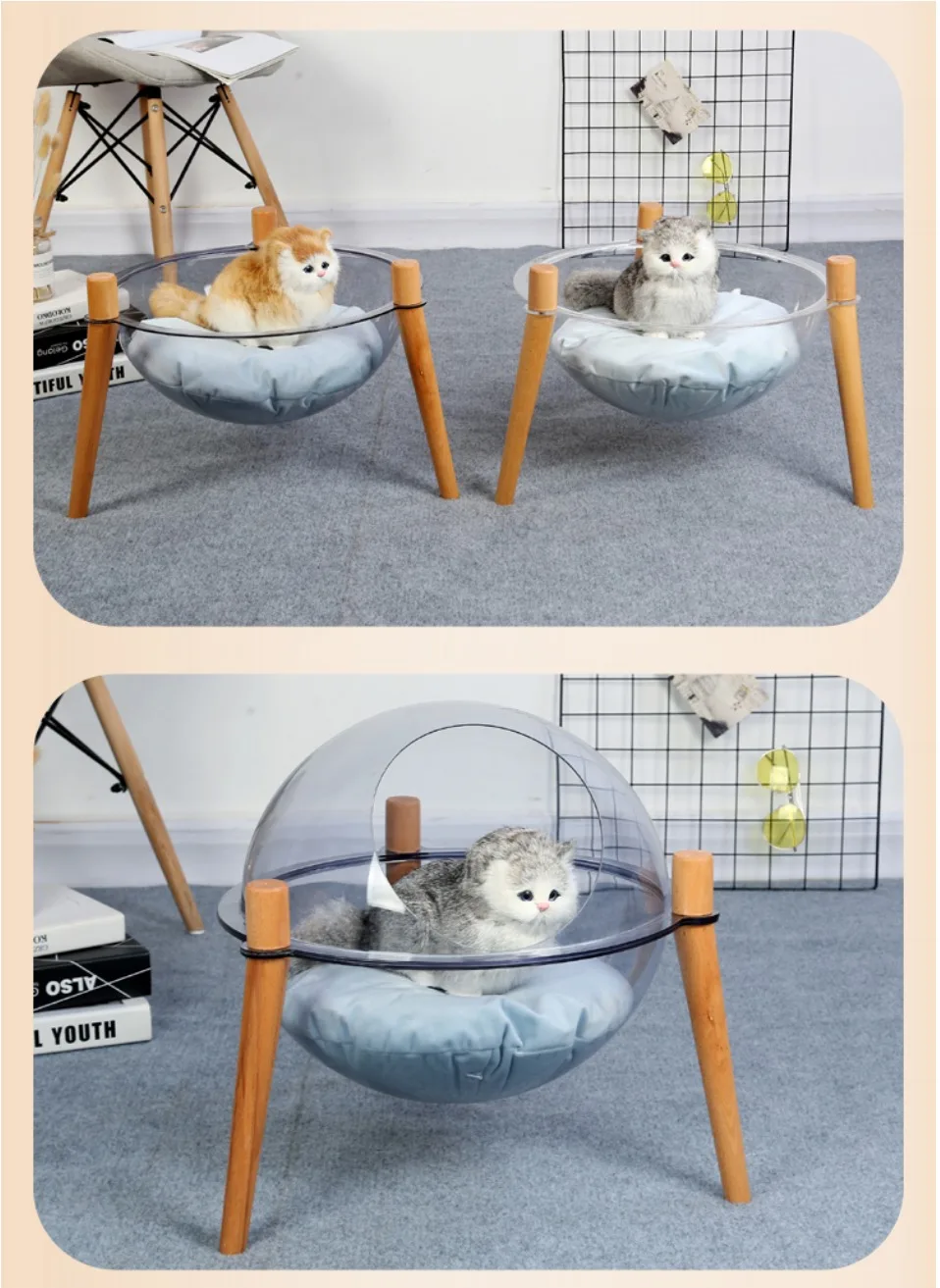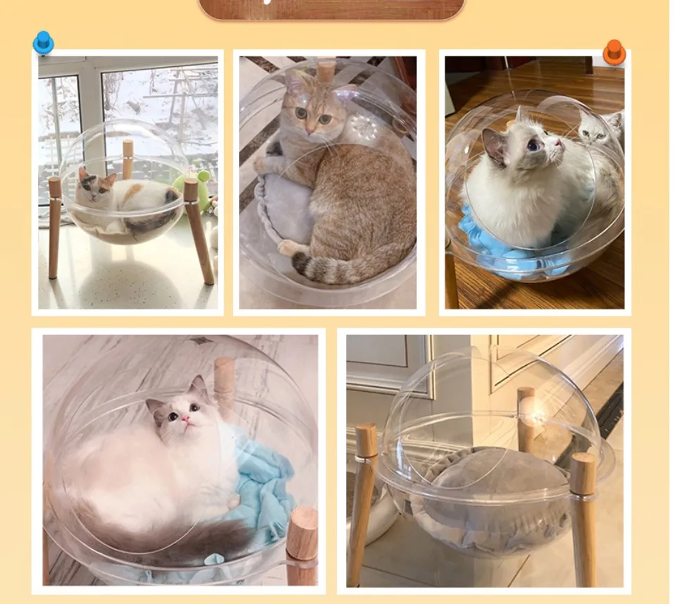 Домик для домашних питомцев и кошек, маленький домик для кошек и собак, космическое капсульное гнездо, акриловые сферические прозрачные коврики для сна для собак