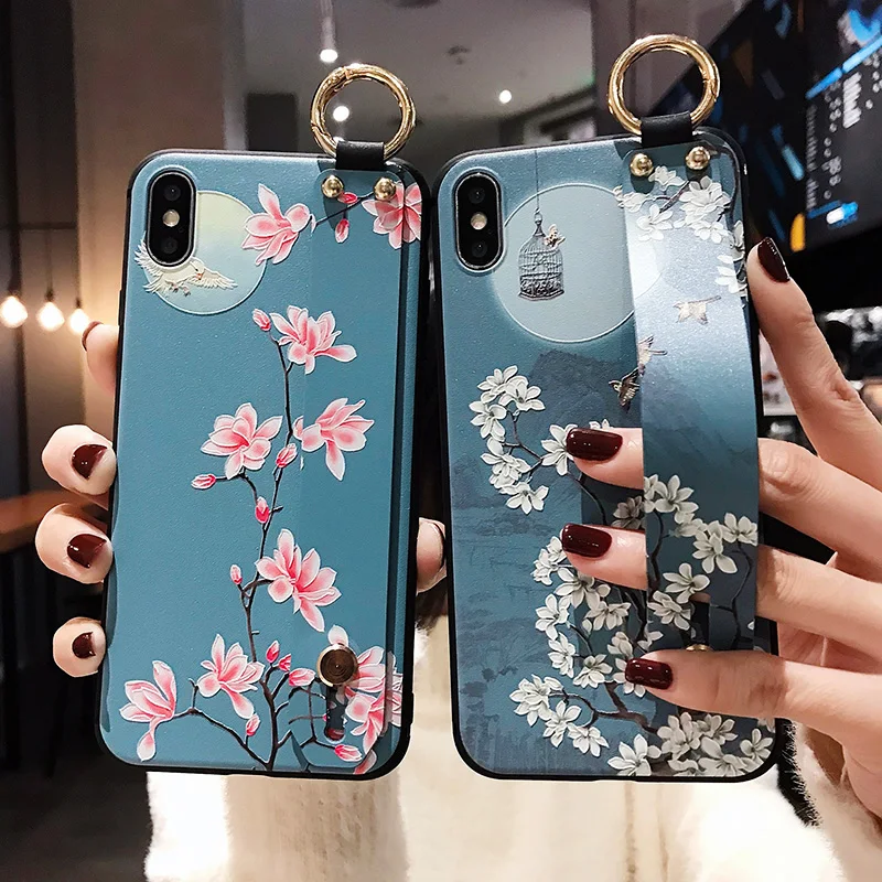Модный художественный чехол-подставка с листом для OPPO A5 2020 A9 Realme 8 Pro Reno 5 6 Pro, роскошный мягкий чехол с тисненым держателем для телефона