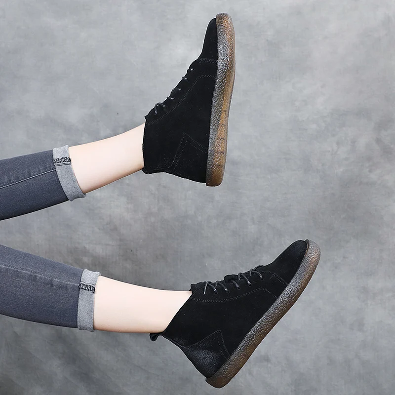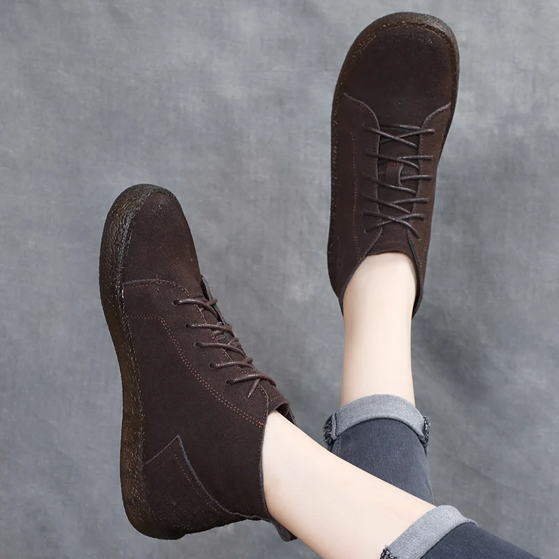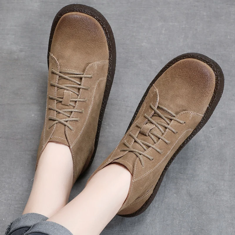 Женские осенние замшевые ботинки-мартинсы Tilocow в стиле ретро для женщин, ботинки на мягкой подошве со шнуровкой, женские повседневные ботильоны на плоской подошве