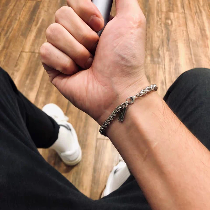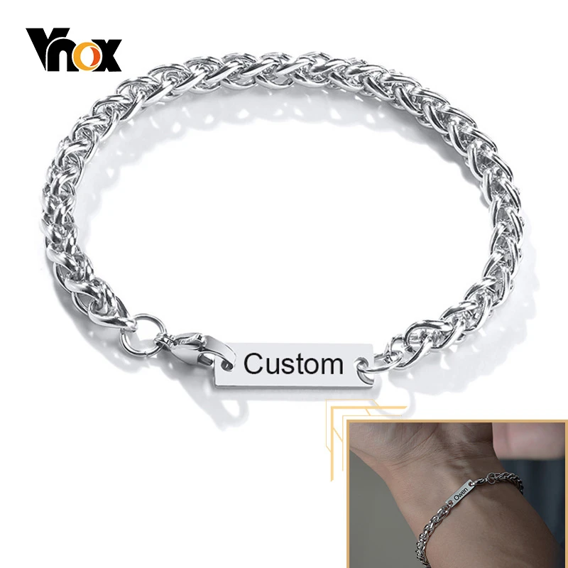 Браслет Vnox с лазерной гравировкой имени инициала для женщин и мужчин, металлический браслет с цепочкой из пшеницы, повседневная бижутерия в стиле панк, 3 способа ношения