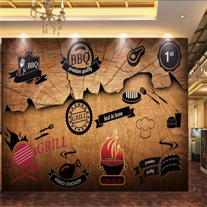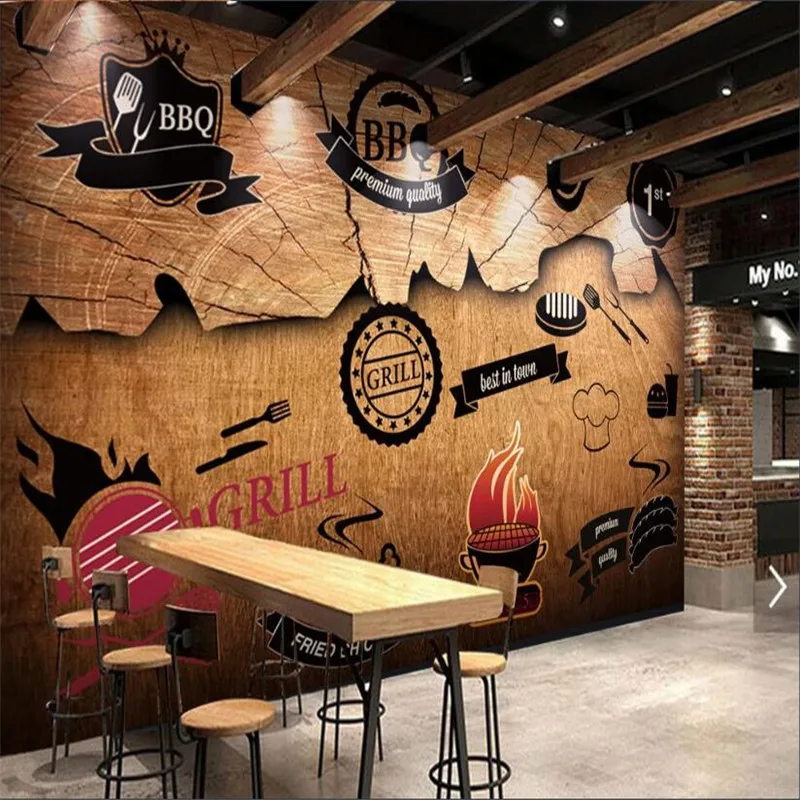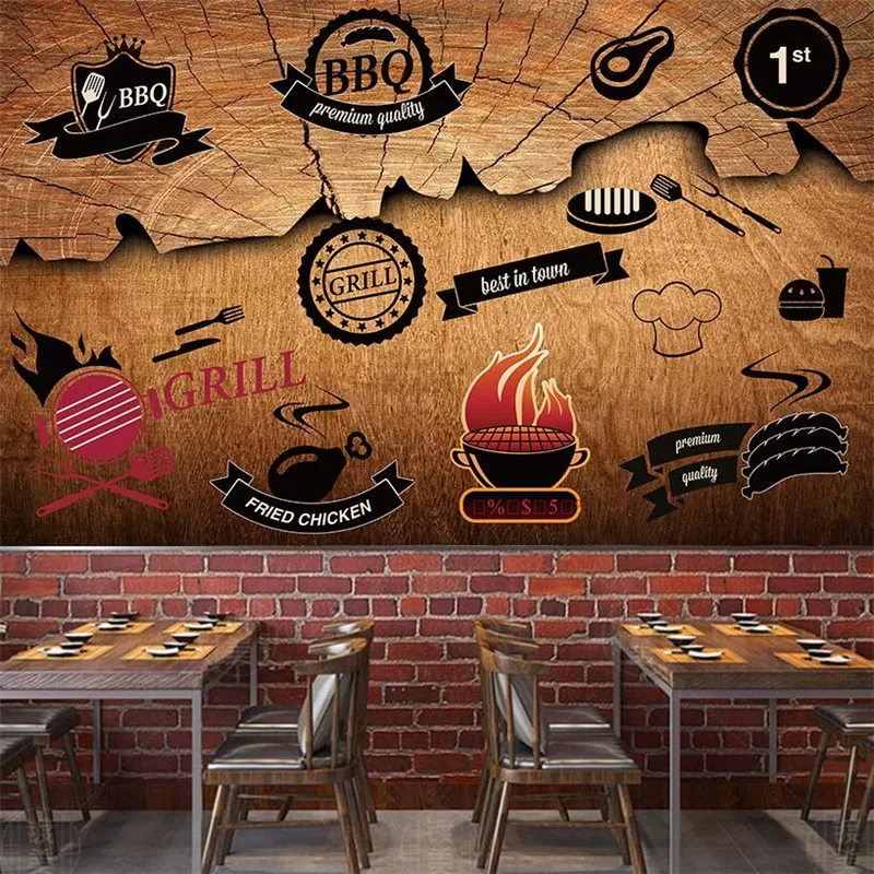 Пользовательский размер пивной бар барбекю Ресторан промышленный Декор серый фон настенная бумага 3D барбекю кебаб снэк-бар настенная бумага 3D