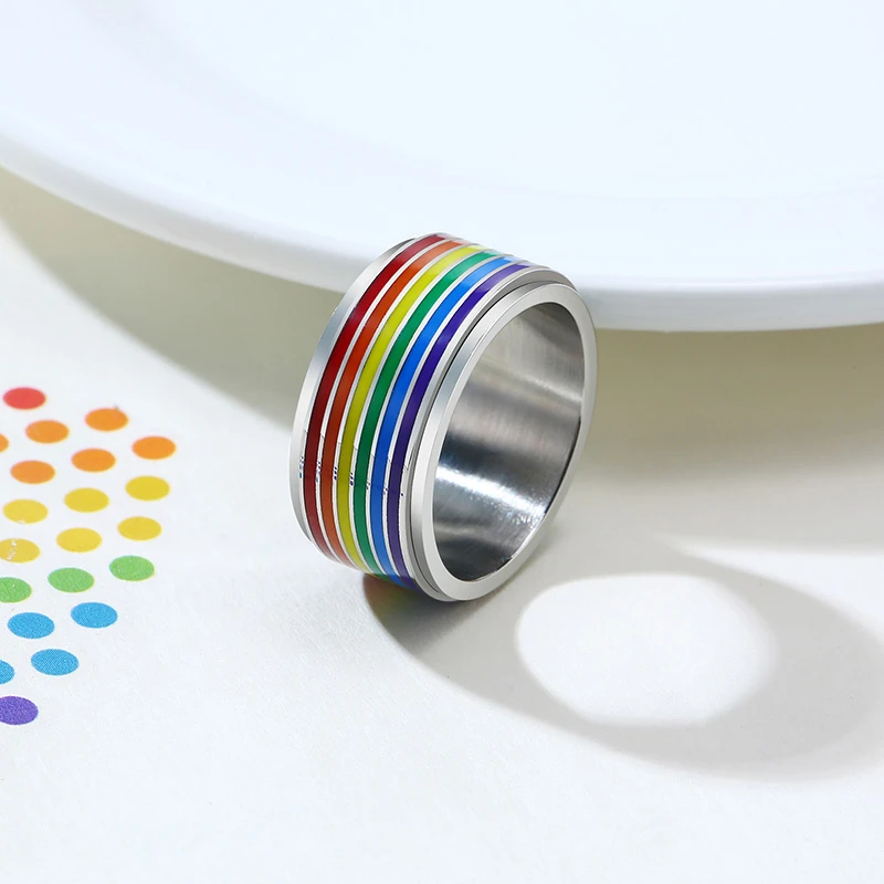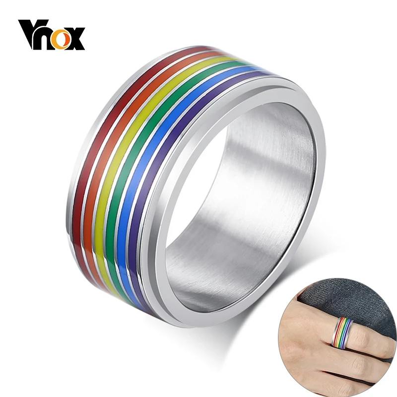 Vnox 8 мм Спиннер антистресс кольцо для мужчин эмалевые радужные линии повязка на палец Повседневная гордость rbtq ювелирные изделия