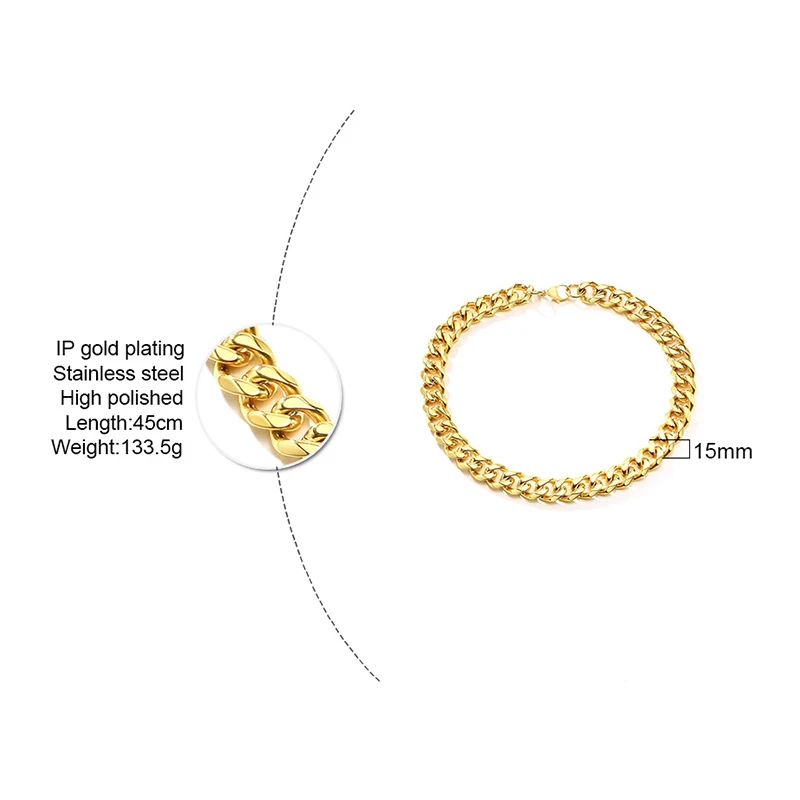 Vnox массивная Тяжелая панк цепочка ожерелье для женщин и мужчин толстое золотистое одноцветное колье из нержавеющей стали готическое Miami Curban Links