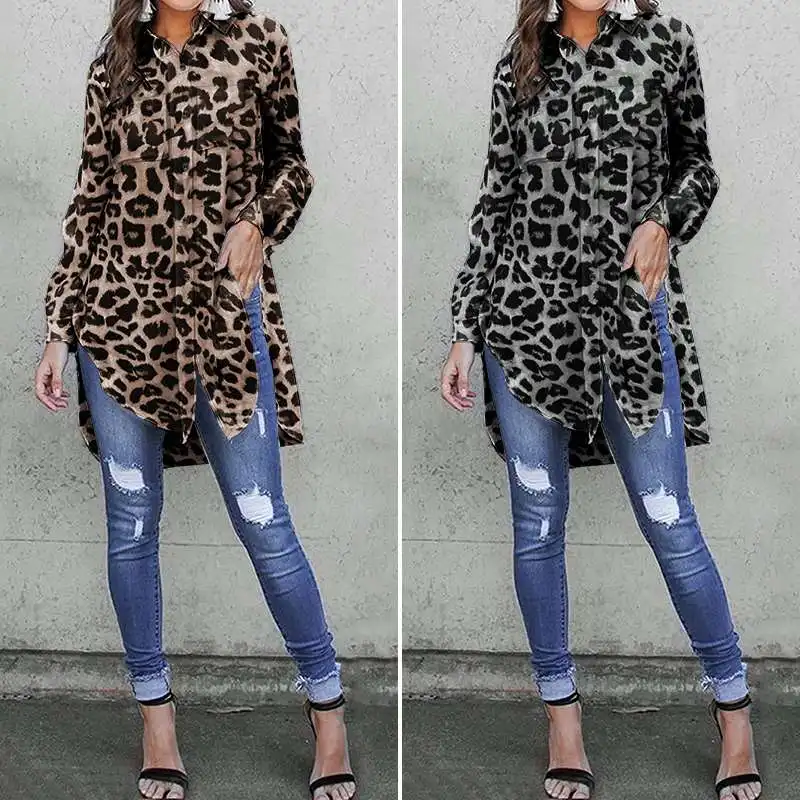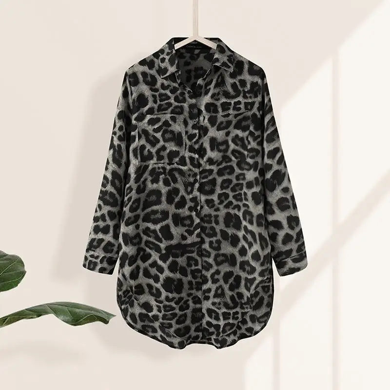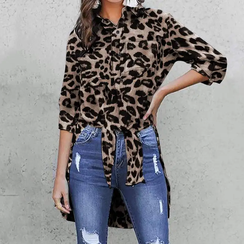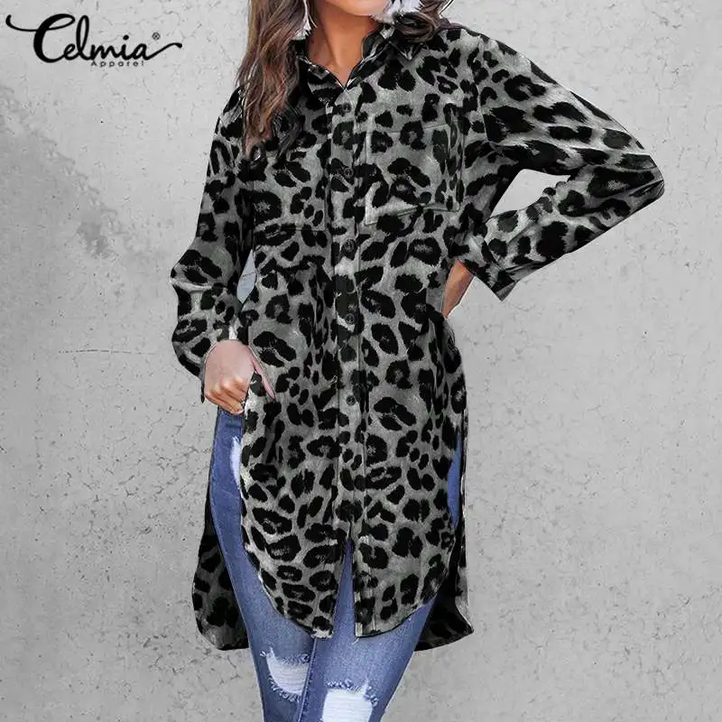 Блузка Celmia женская с леопардовым принтом, модная туника с длинным рукавом, повседневный Свободный Топ на пуговицах, Офисная Дамская рубашка, осень 2021
