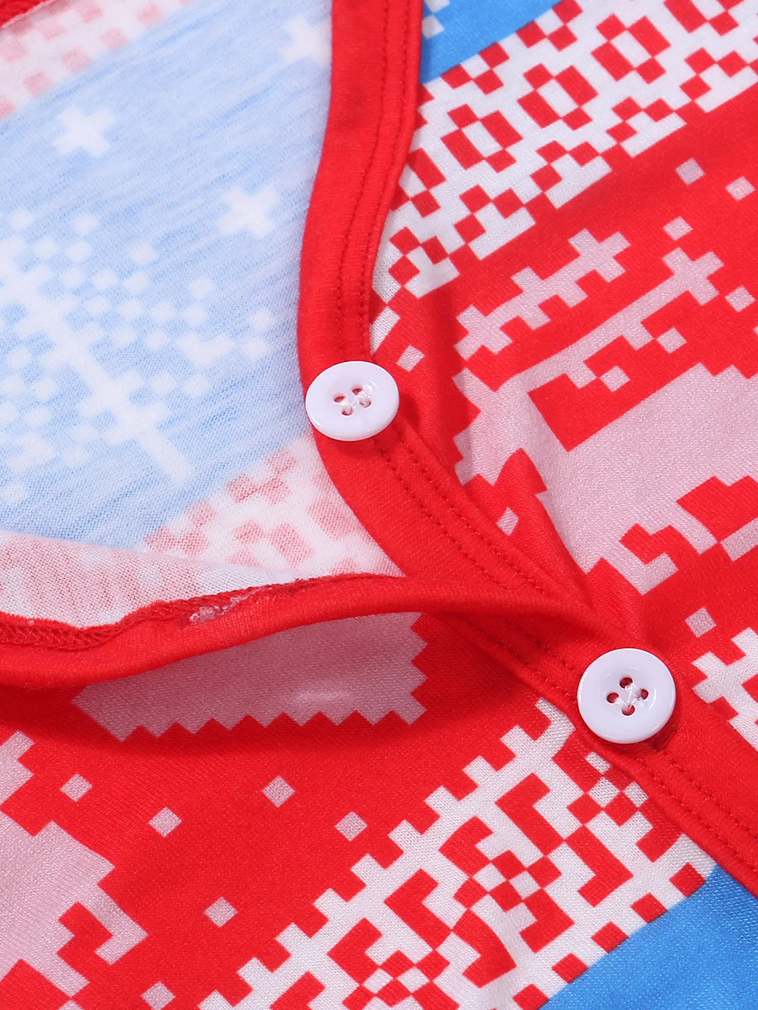 Рождественский комплект из 2 предметов, Женский цветочный принт, v-образный вырез, топ с длинными рукавами и брюки, светильник, синийкрасныйжелтый