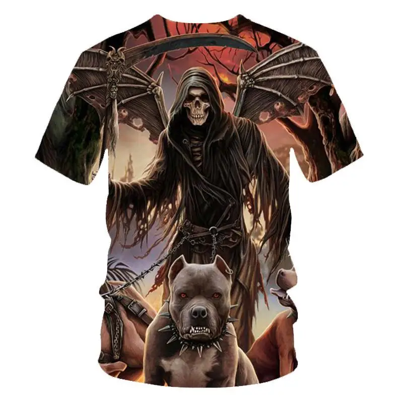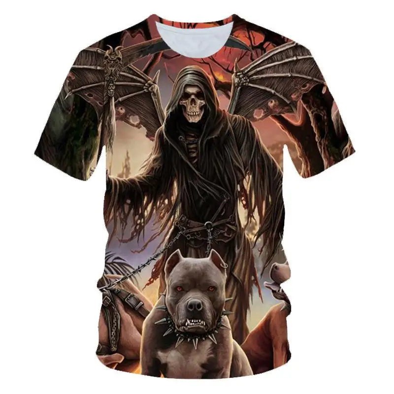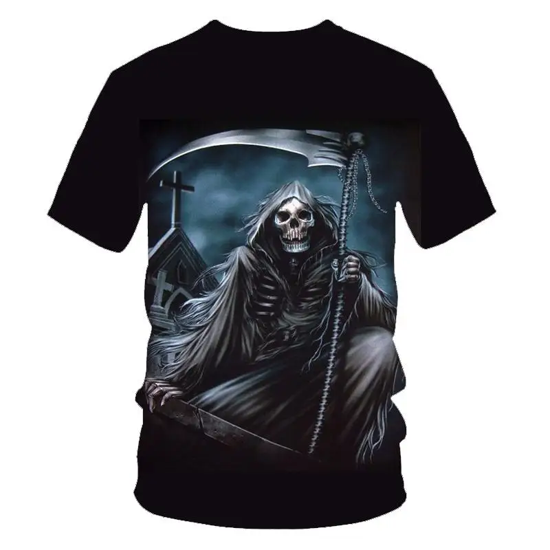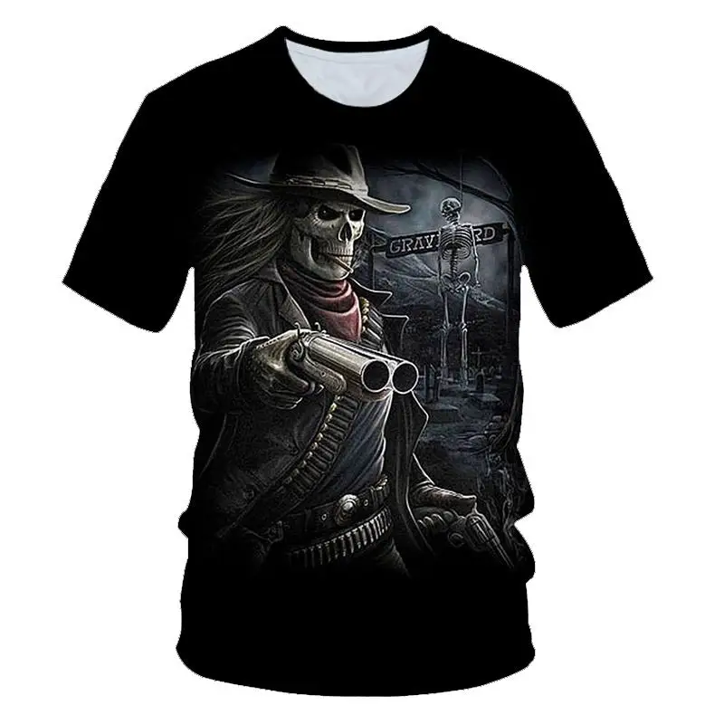 Футболка мужская с 3D-принтом скелета, крутая тенниска в стиле рок,...