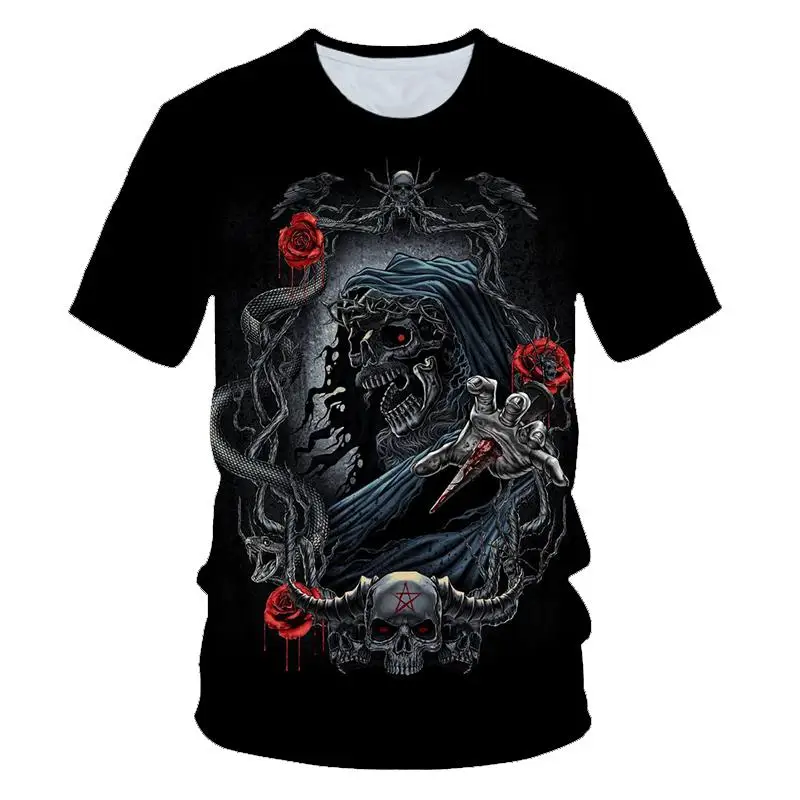 Футболка мужская с 3D принтом черепа, крутая тенниска в стиле рок, ...