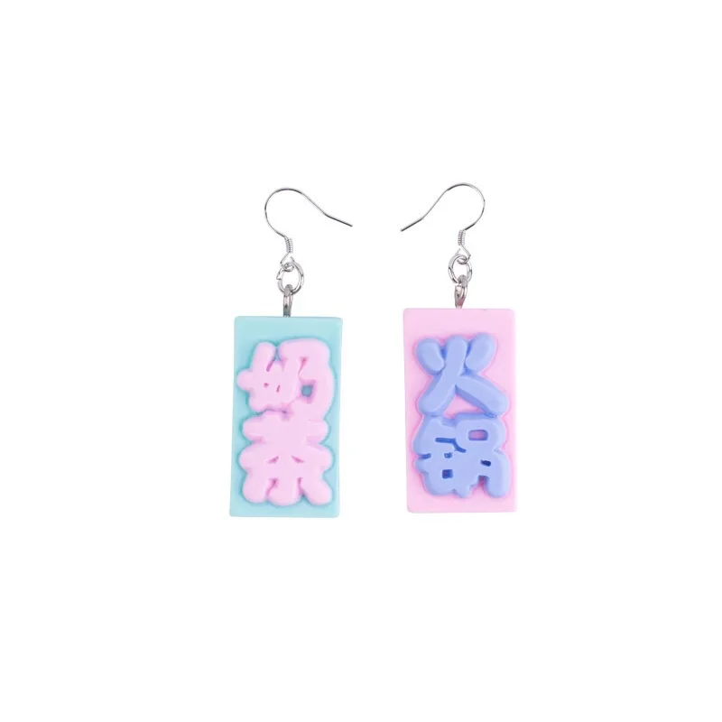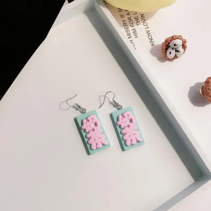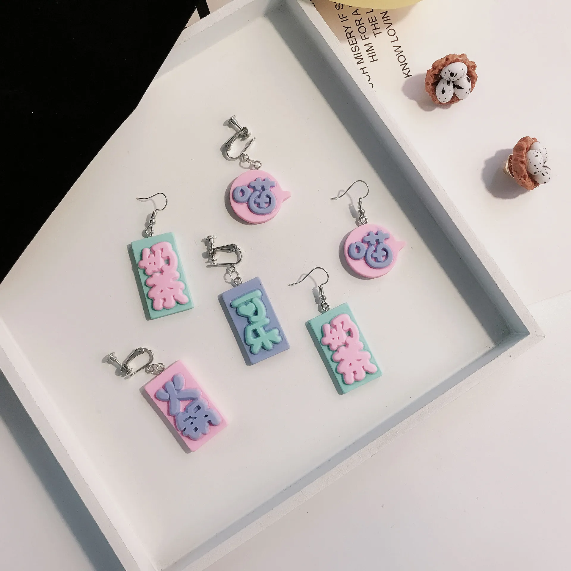 Новые корейские серьги Linmouge из смолы с китайским иероглифом, подвеска с плоской задней частью, ювелирные украшения для девушек EF148