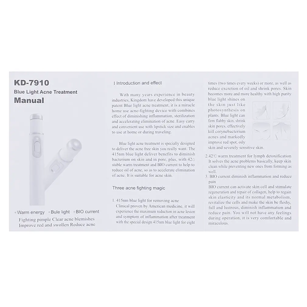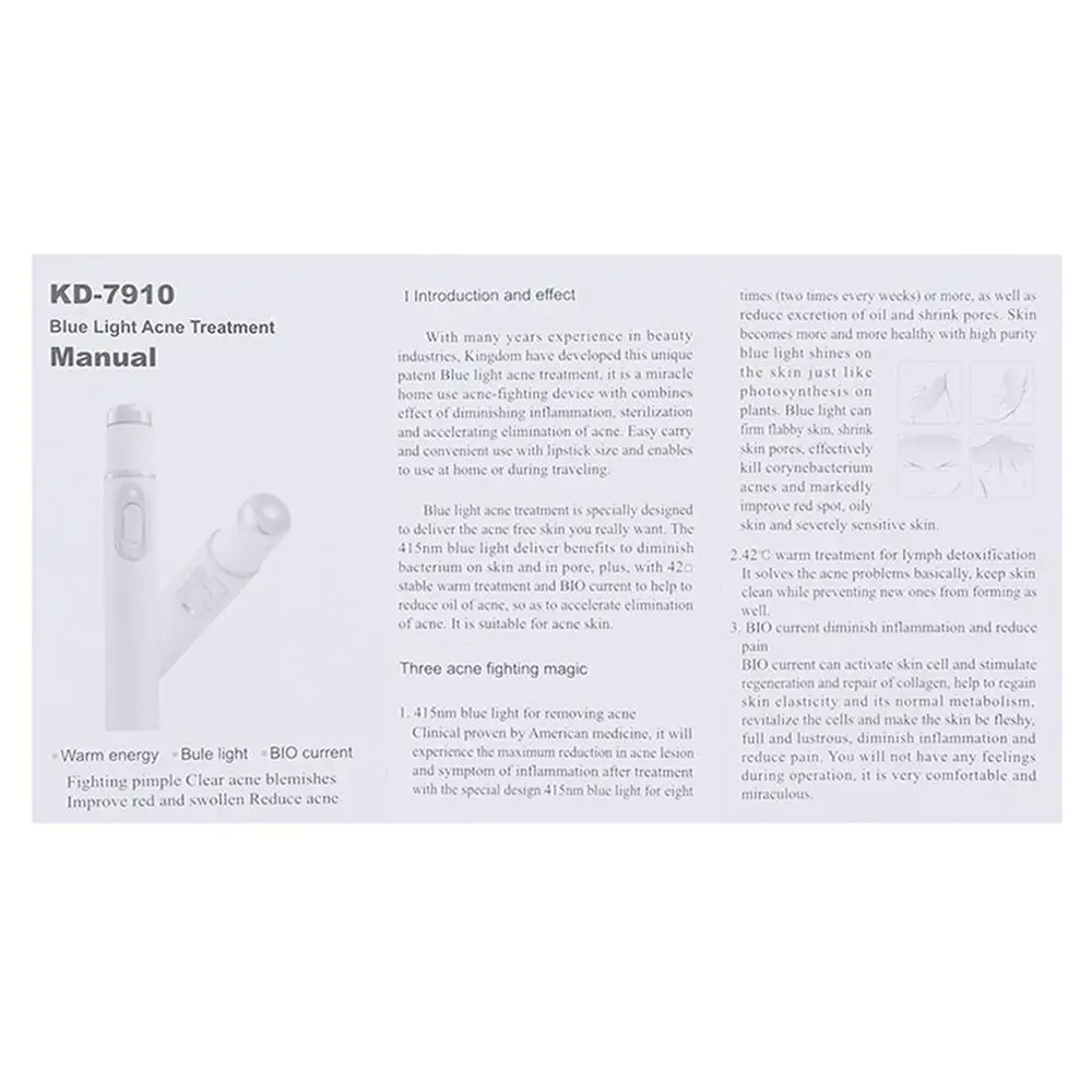 Особенности:Сочетание 415 нм синей мокроты от прыщей + би микро-токовая противовоспалительная боль + 42 градусная Тепловая Лимфатическая энергия детоксикация.Отличная работа на восставших и повторяющихся прыщах и акнеПомогает избавиться от акне и разглаживать кожу.Помогите вернуть блеск для тона лица.Работающий от батареи, беспроводной дизайн, переносить и использовать, куда бы вы ни отправились.Легкий и портативный.Описание:Идеальное сотрудничество последних трех технологий (415 нм Синий светильник + био-биоэлектричество + 42 ° Горячая Лимфатическая детоксикация)Может проникать в кожу поверхностной ткани, преимущества кровообращения, способствует выделению клеток коллагена, тем самым устраняя акне,Восстанавливает шрамы от акне, уменьшает акне, эффективно отбеливает и разглаживает кожу. Барри работает, более удобно в использовании, независимо от того, куда вы идете.Характеристики:Модель: KD-7910Название: EMS Удаление прыщей Blu-RayНапряжение: DC1.5VТок: 0.6AМощность: 0,9Размер изделия: 135*19*19 ммЦвет: белыйМатериал: АБС-пластикИсточник питания: 1 * AA батарея (батарея в комплект не входит)Примечание:Возможны незначительные отклонения в размере на 1-3 см (0,4-1,18 ") измерения выполнены вручную, допускаются отклонения в размере в пределах и небольшое отличие в цвете может незначительно отличаться из-за разных настроек экрана Посылка включает в себя:1 x лазерная ручка для прыщей (батарея не входит в комплект)1 x Руководство пользователя