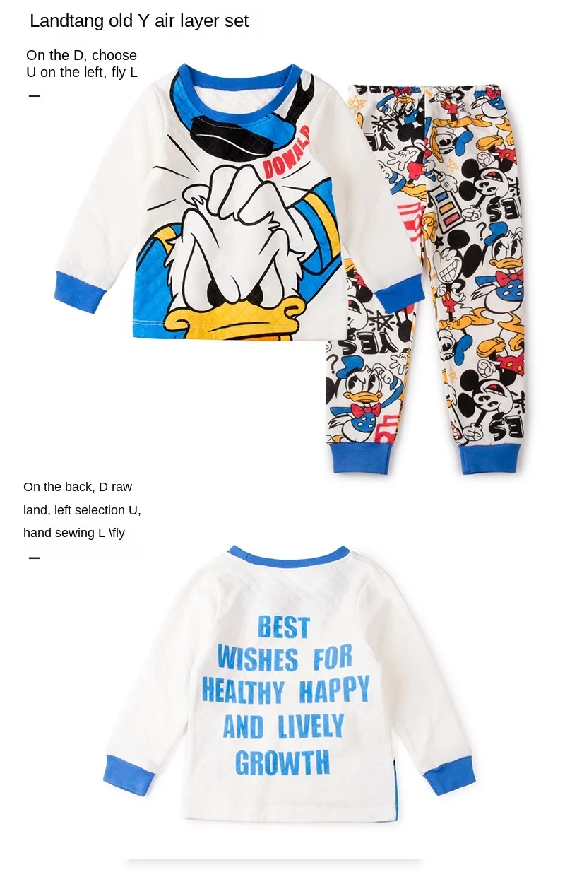 Комплект детской одежды, весна-осень, комплект домашней одежды хлопковое нижнее белье для мальчиков и девочек, теплый базовый комплект из двух предметов с героями мультфильмов