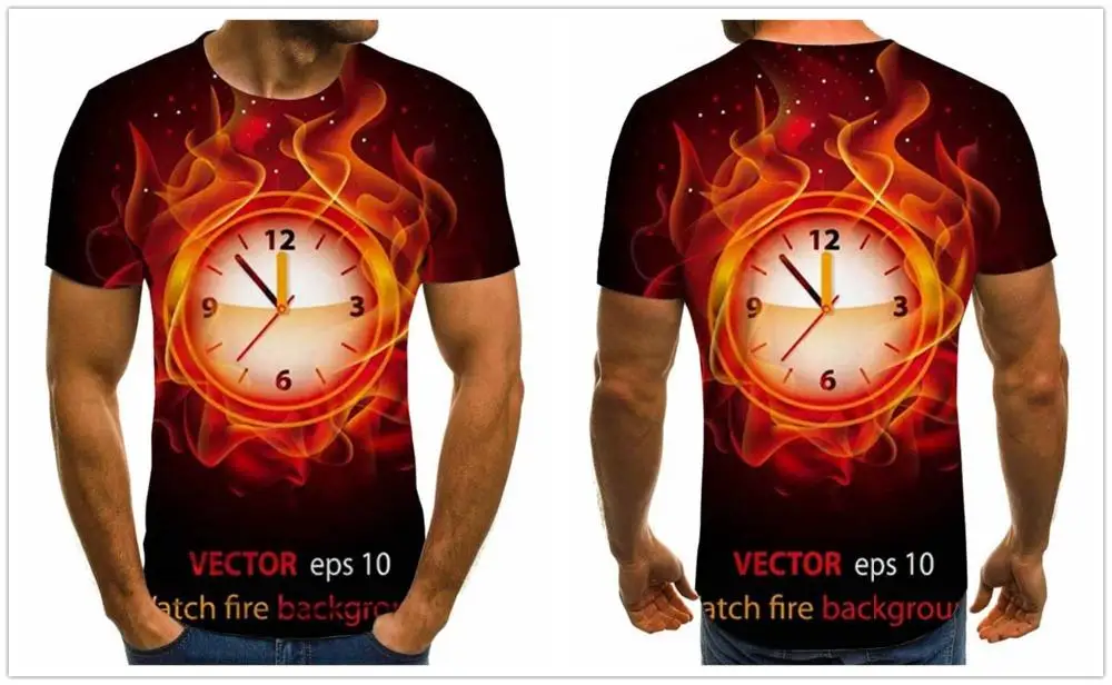 Новинка 2020, Мужская футболка 3D с рисунком будильника и пламени, ...