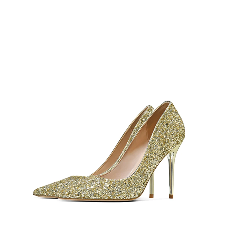 Туфли-лодочки женские GOXEOU, серебристые, золотистые, черные, с острым носком, на шпильке, свадебные, вечерние, размеры 32-46