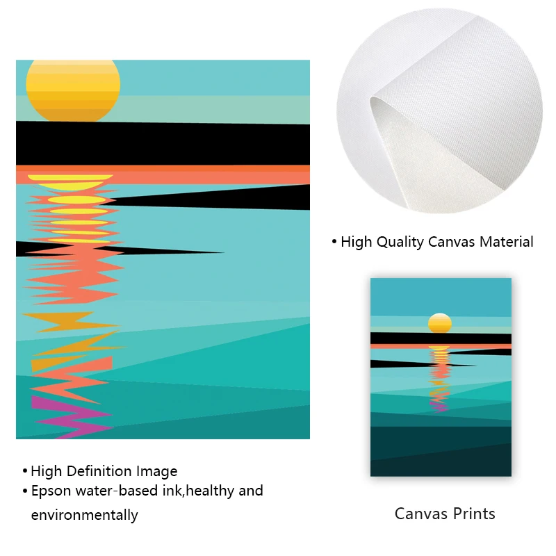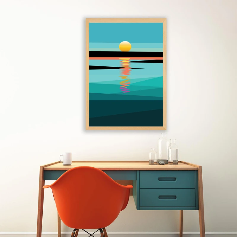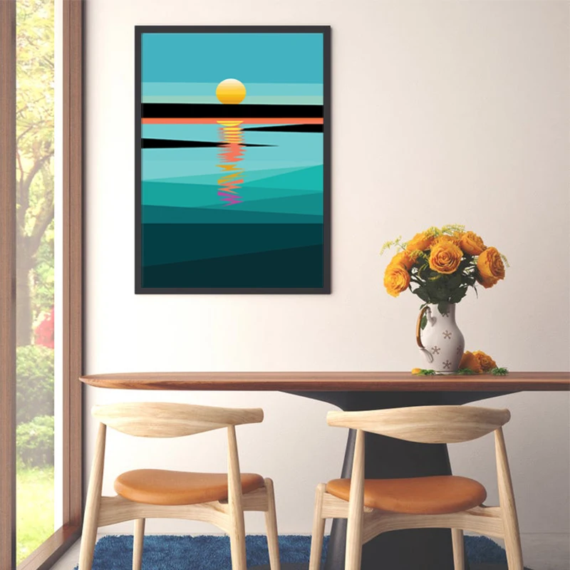 Настенная картина на холсте с закатом, абстрактный геометрический пейзаж с небом, океаном, современный плакат, декор для гостиной, спальни