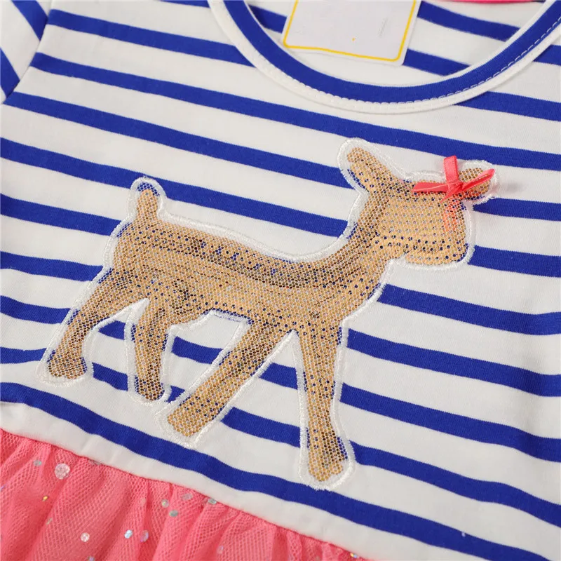 SAILEROAD Deer Sequined Holiday Dresses for Girls Girls Long Sleeve Dress Cotton Christmas Dress Vestido Striped infantil
