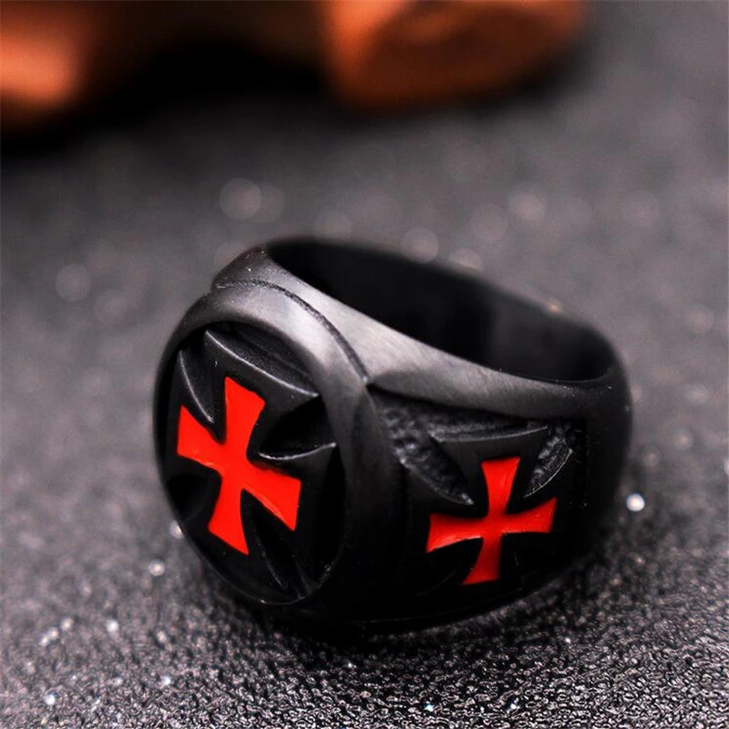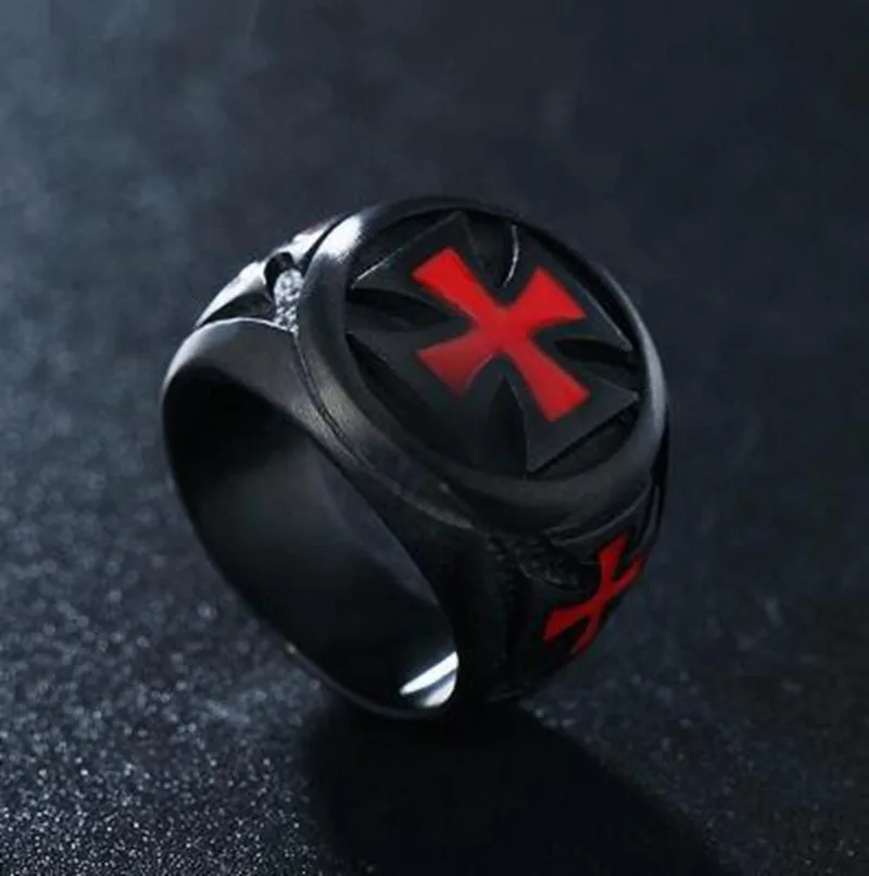 Простой черного цвета в стиле панк крест Рыцарь кольцо тамплиера дл...