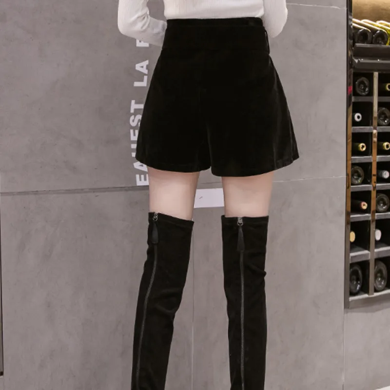 Весенне-осенние бархатные женские шорты #0613 с поясом, пикантные широкие шорты с высокой талией, женские повседневные женские шорты с эластичным поясом