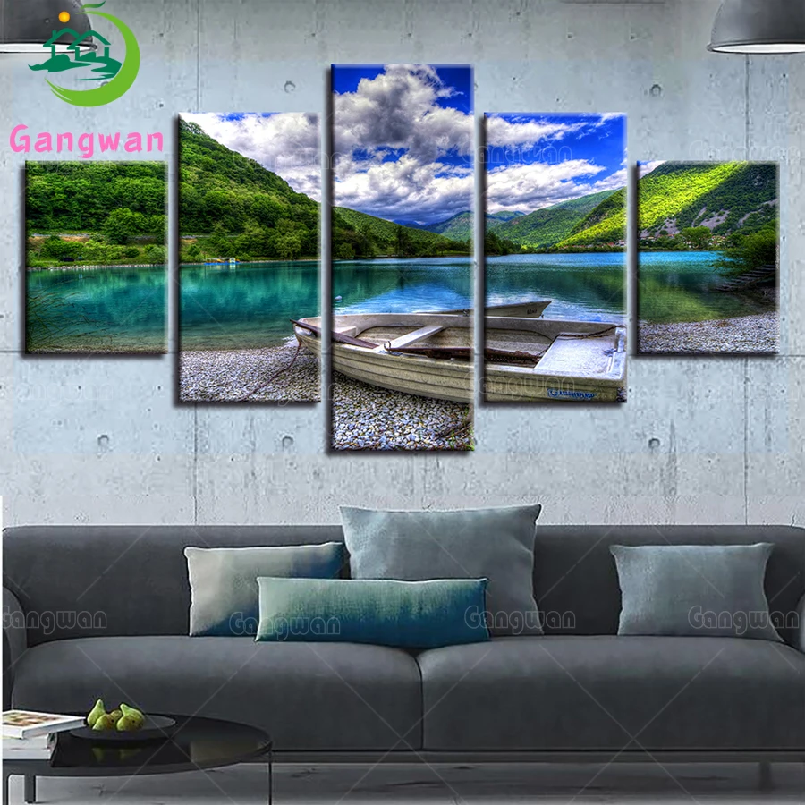 5 шт., горное озеро, корабль и голубое небо, белое облако, декорации, сделай сам, алмазная живопись, полная дрель, алмазная вышивка, мозаика, домашний декор