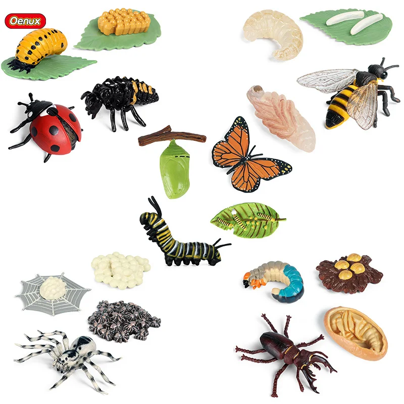 Фигурки фигурок Oenux, новые модели с циклом роста животных, имитация пчелы, паука, бабочки, милые детские развивающие игрушки