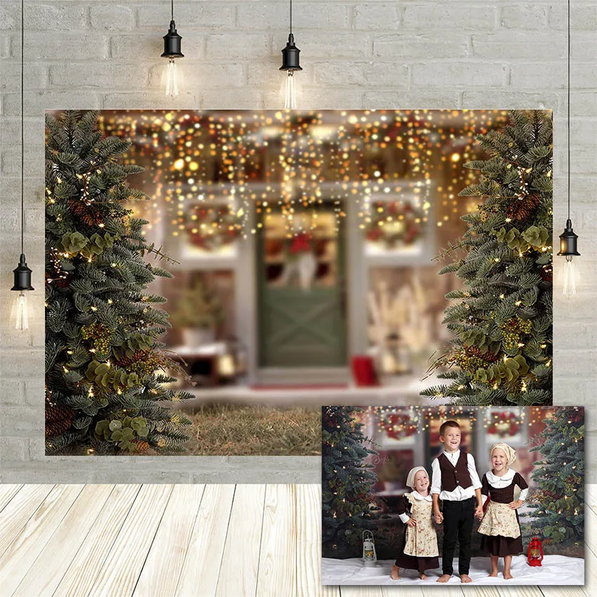 Avezano Зимний Рождественский фон для фотосъемки с изображением дерева блеск светильник фон с домами семейного портрета Декор фото Студийная фотосъемка