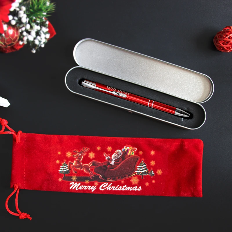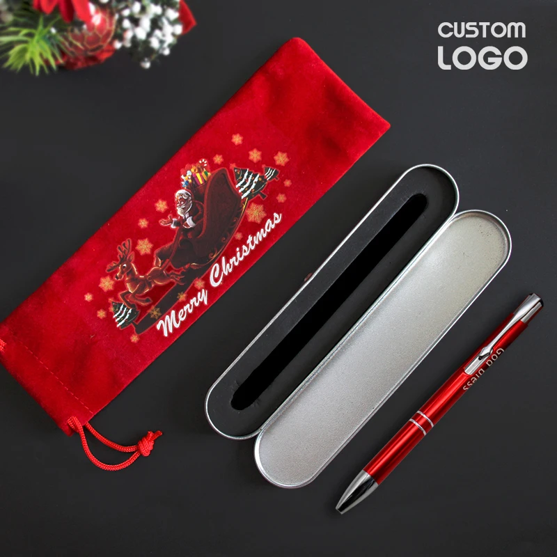 3 шт.лот Рекламные шариковые ручки с гравировкой на заказ, чехол для ручек, Рождественская сумка для ручек, офисные канцелярские товары, подарок для детей на Рождество и новый год