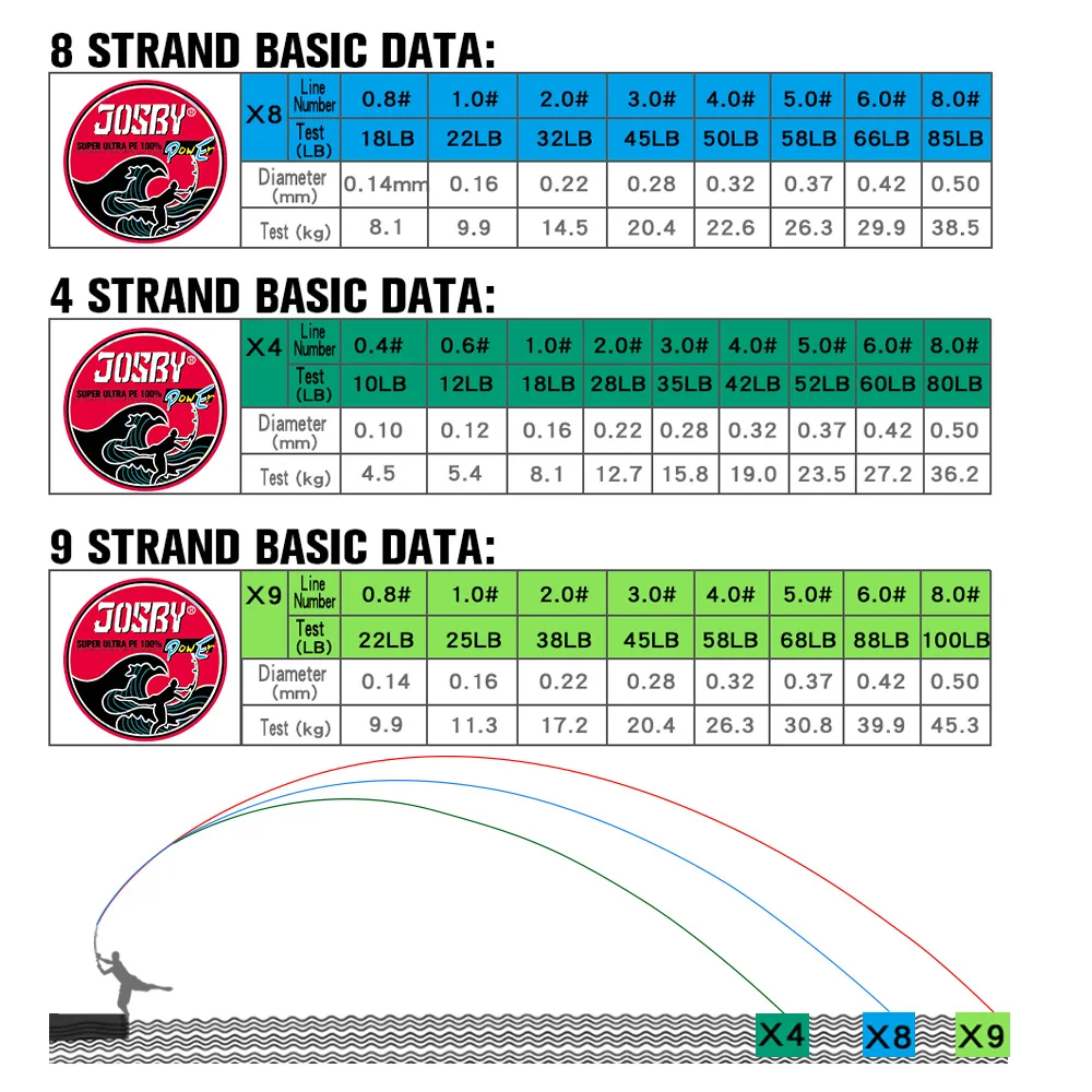 Рыболовная леска JOSBY, плетеная 8 нитей, 9 нитей, 10 89 фунтов, 300 М500 м1000 м