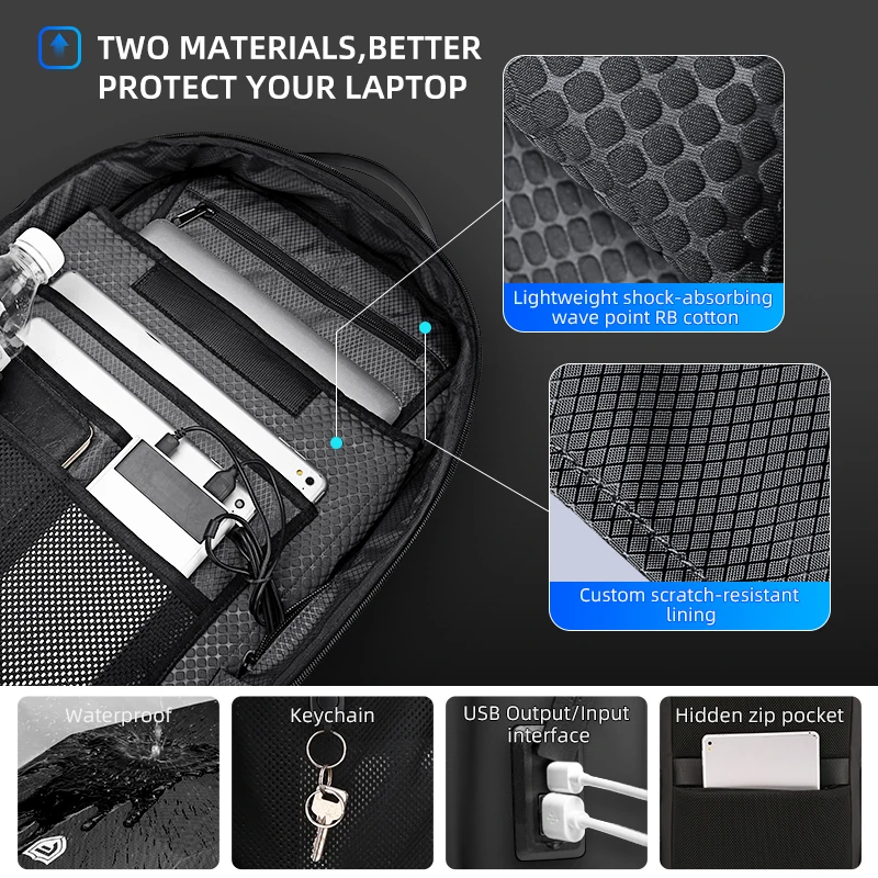 Рюкзак Rowe мужской с защитой от кражи, новейший водонепроницаемый деловой ранец для ноутбука 2020 дюйма, школьный вместительный, 17,3